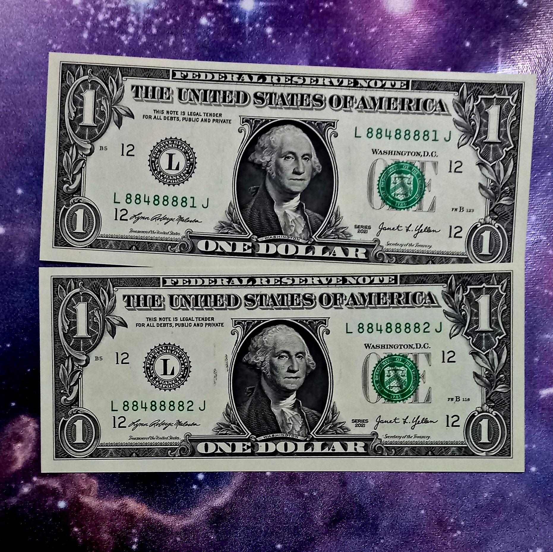 جفت اسکناس 1 دلار 2022 آمریکا شماره قشنگ 88488881