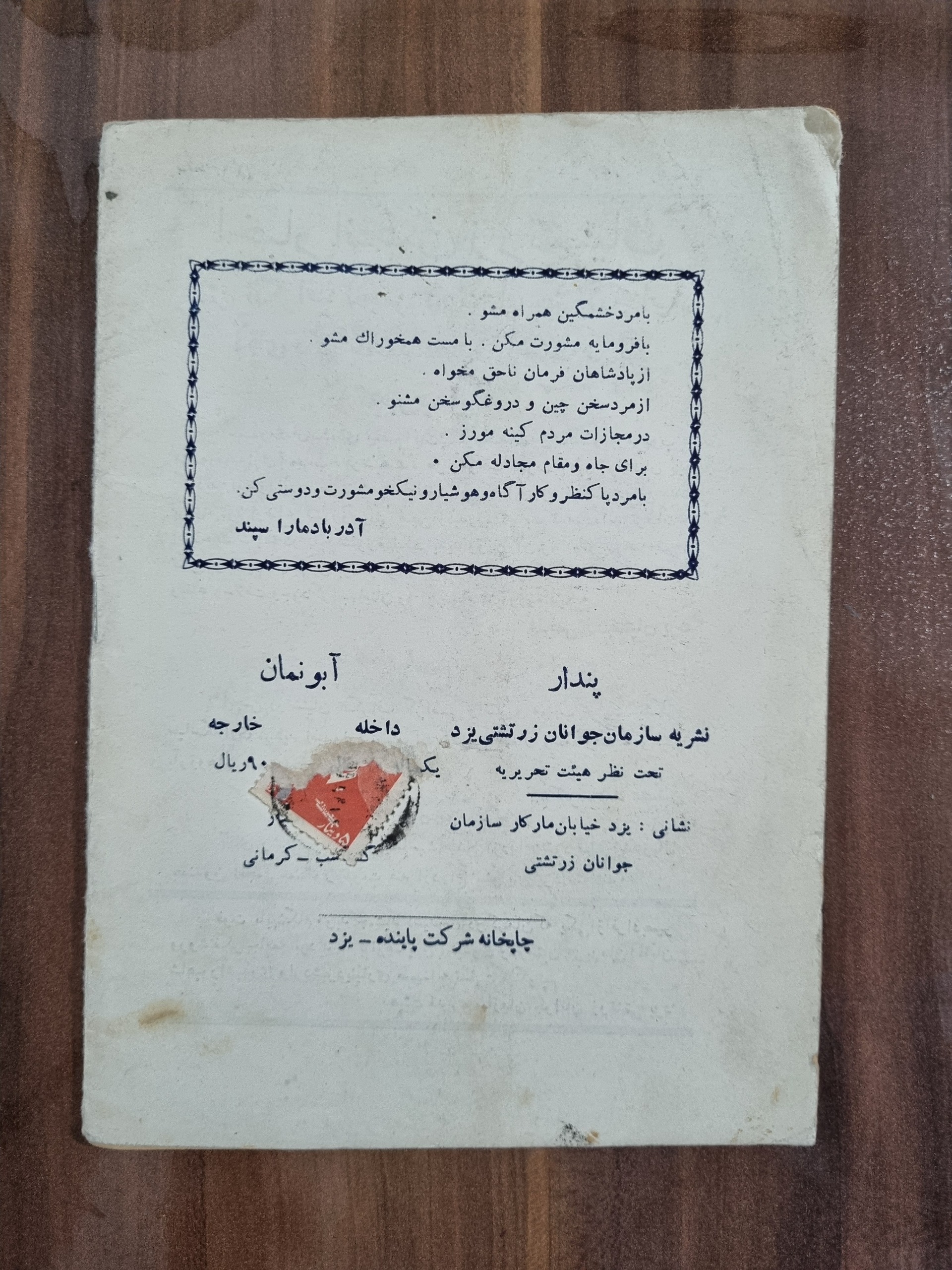 مجله قدیمی پندار، نشریه سازمان جوانان زرتشتی یزد