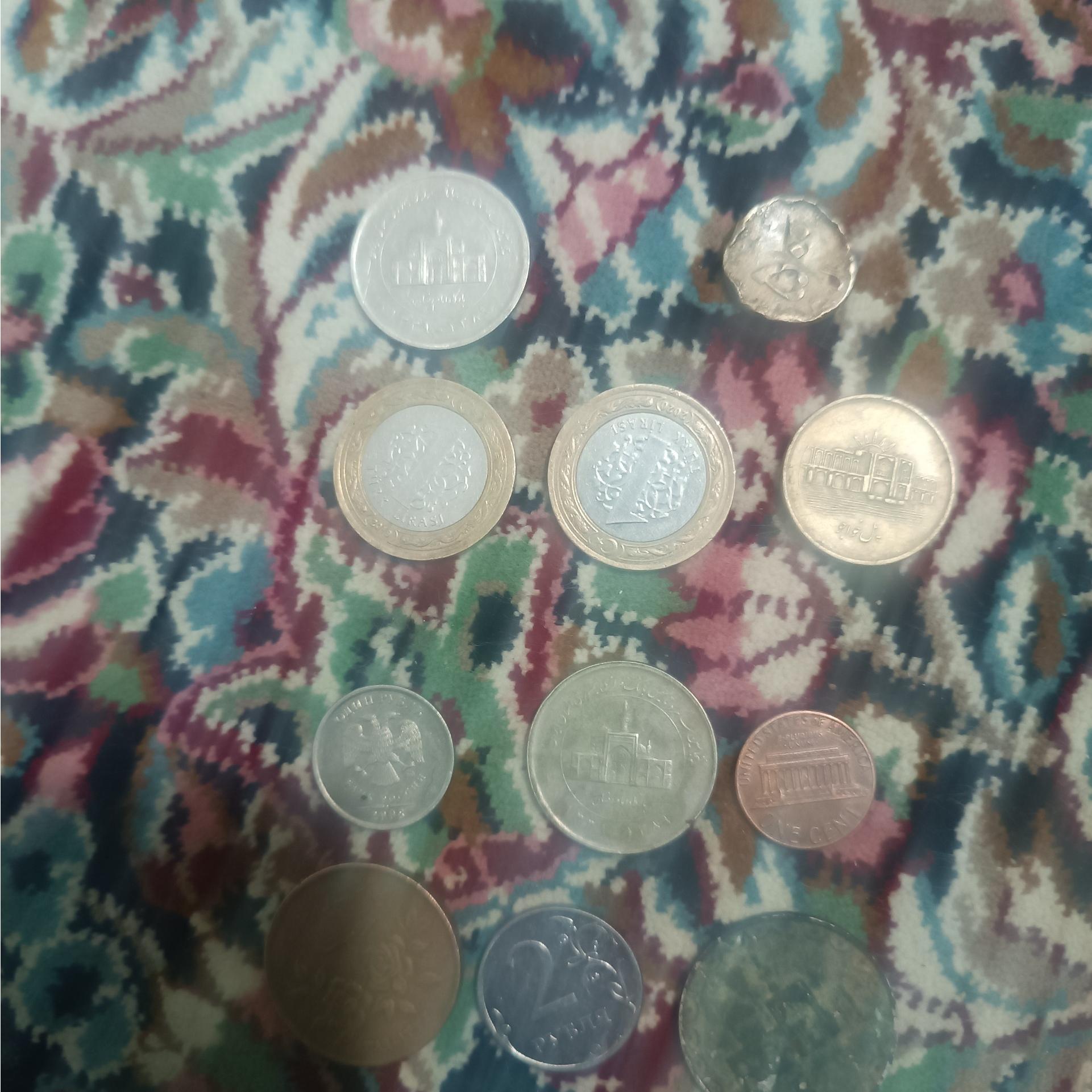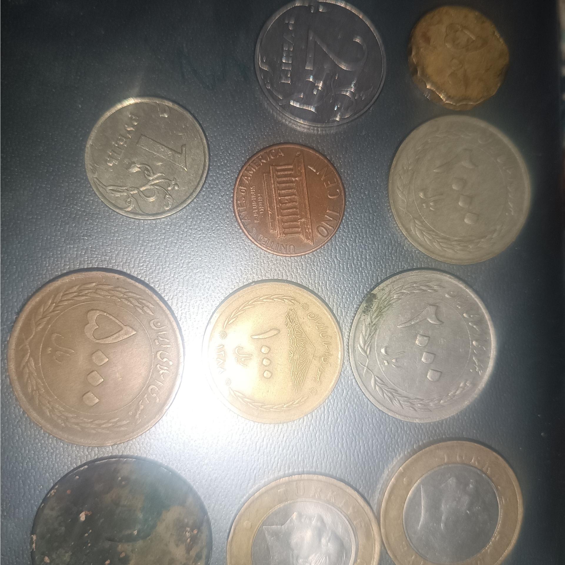 تعدادی سکه ایرانی جمهورس اسلامی قدیمی تو عکس معلومه و تعدادی سکه لیر ترکیه و 1سنتی 1383امریکاو 1پنی 2 پنی