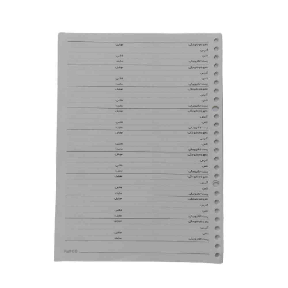 8 عدد برگه کاغذ جدول دار دفتر تلفن کلاسوری 26سوراخ