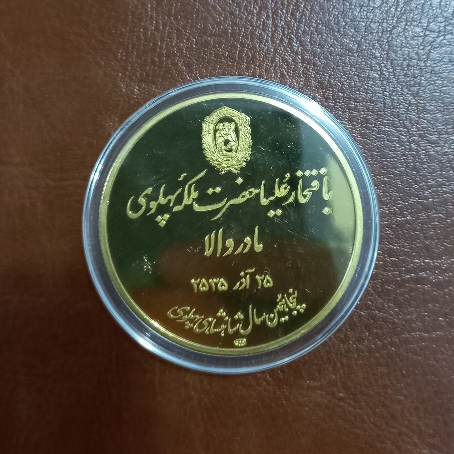مدالیون برنزی یادبودی روکش طلا پهلوی