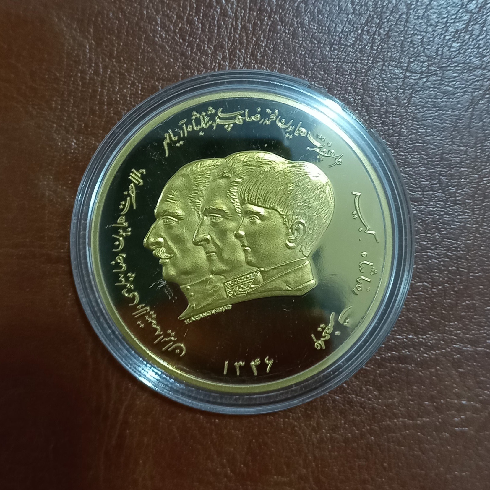 مدالیون برنزی یادبودی روکش طلا پهلوی