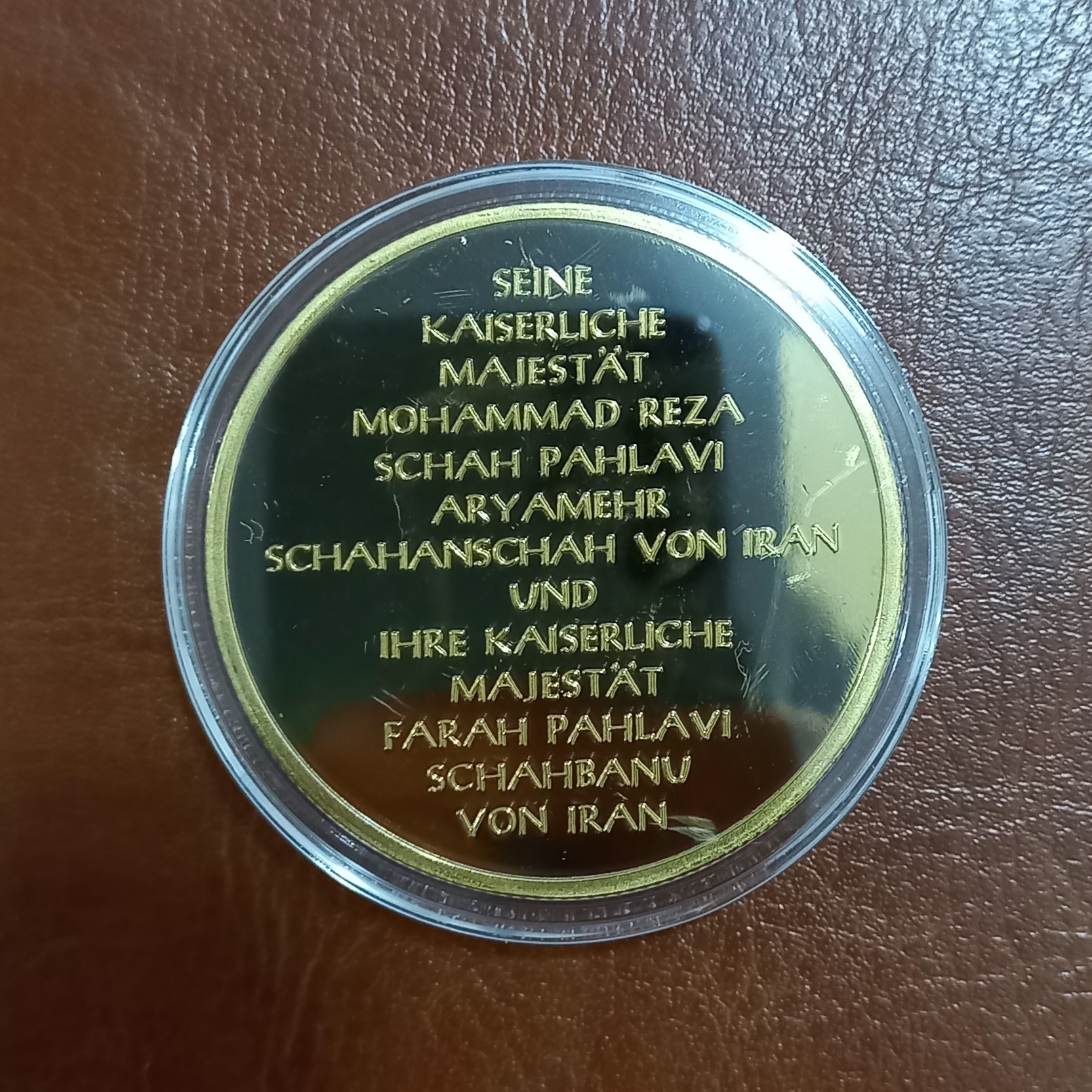 مدالیون برنزی یادبودی روکش طلا پهلوی