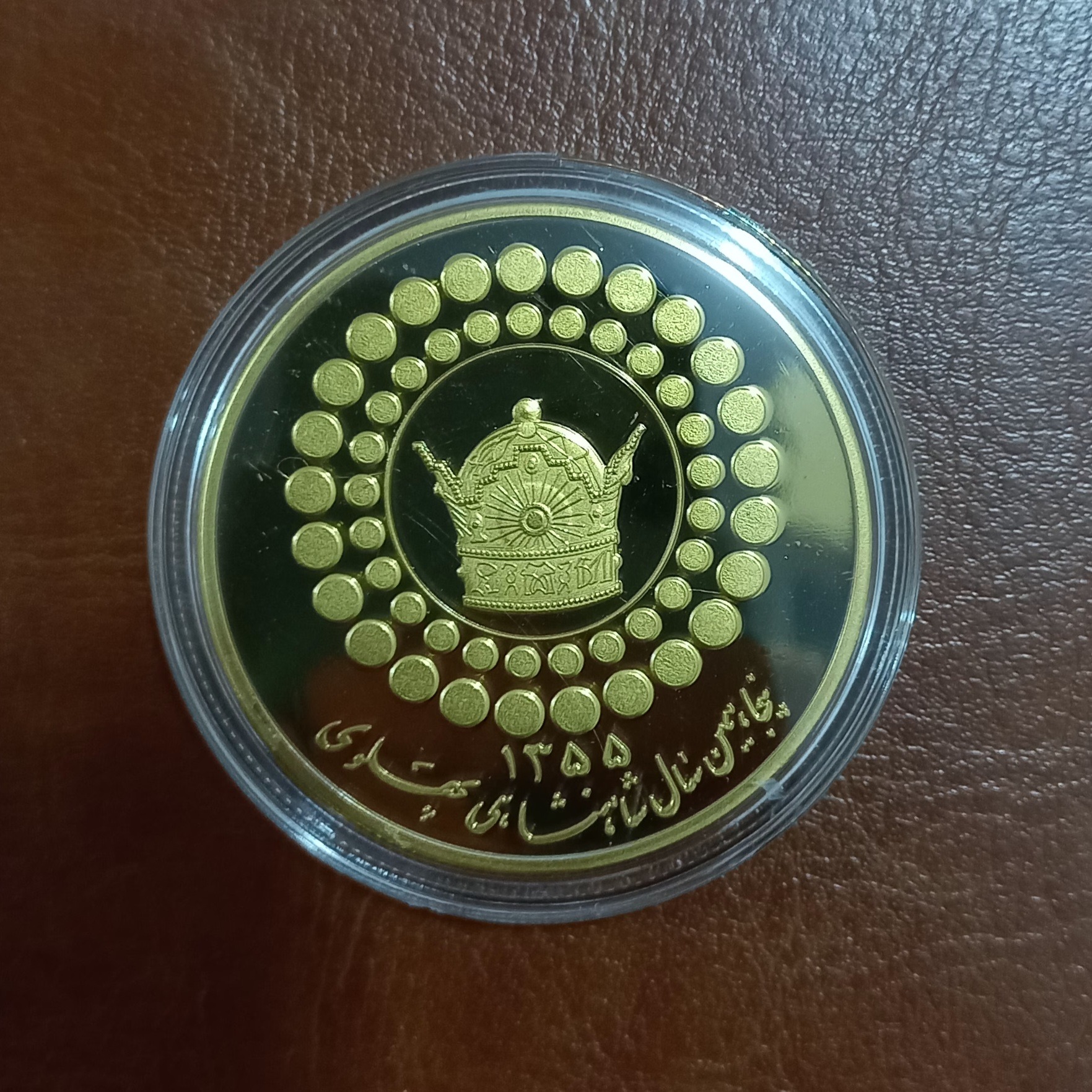 مدالیون برنزی یادبودی روکش طلا پهلوی