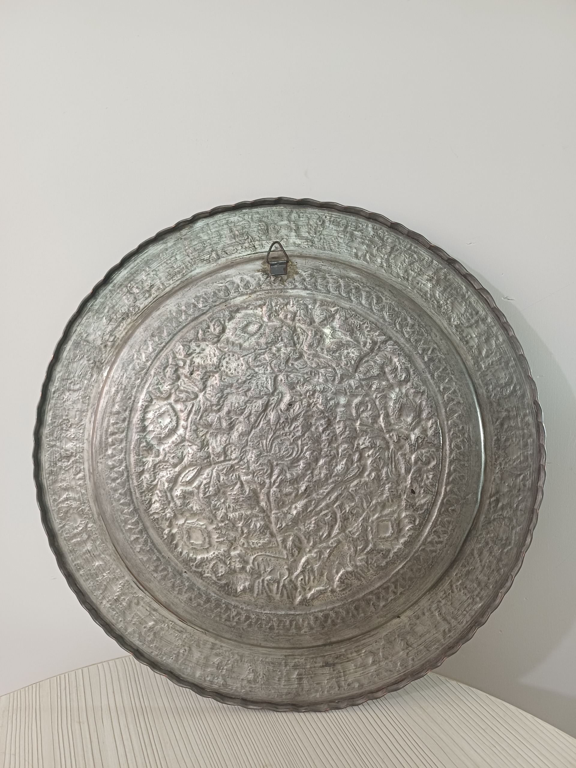 سینی دیوارکوب مسی قلم کهنه قدمت پهلوی بسیار پرکارو زیبا