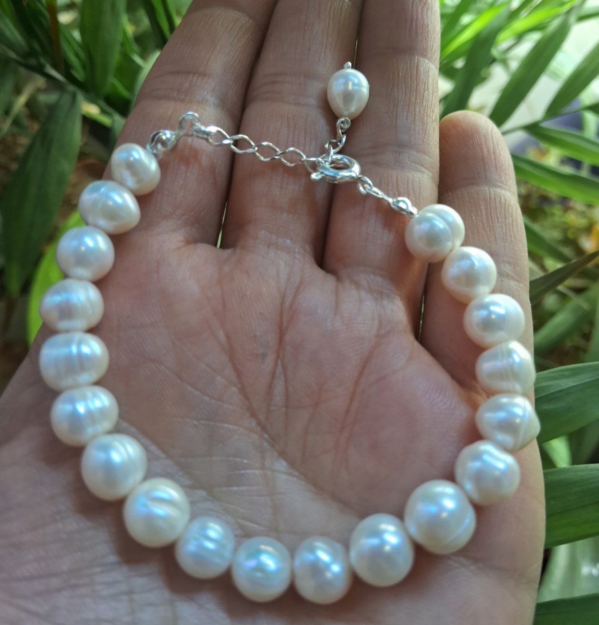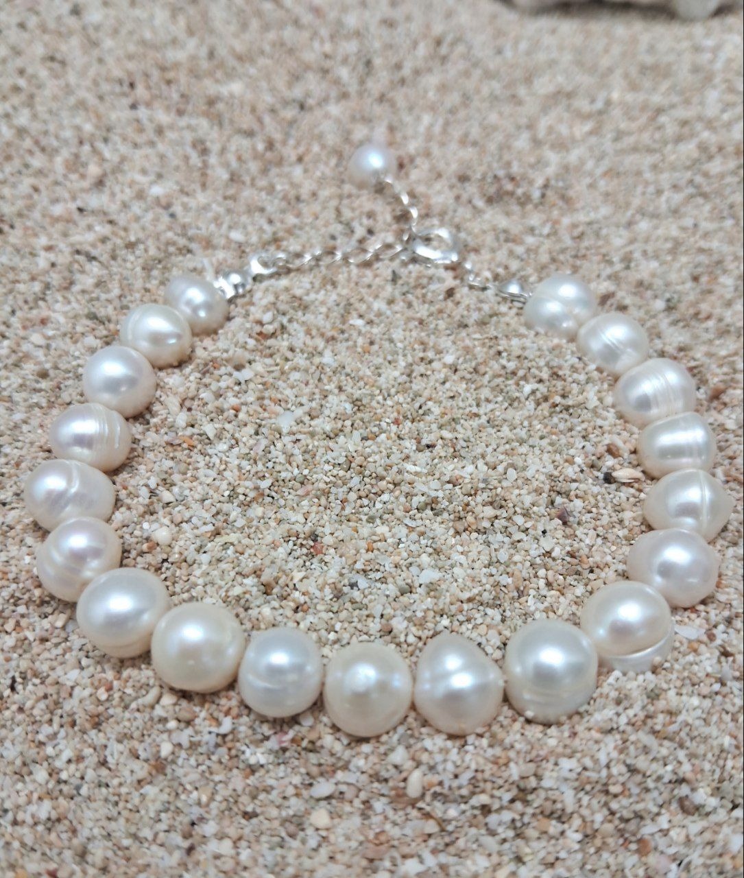دستبند لاکچری نقره مروارید پرورشی طبیعی