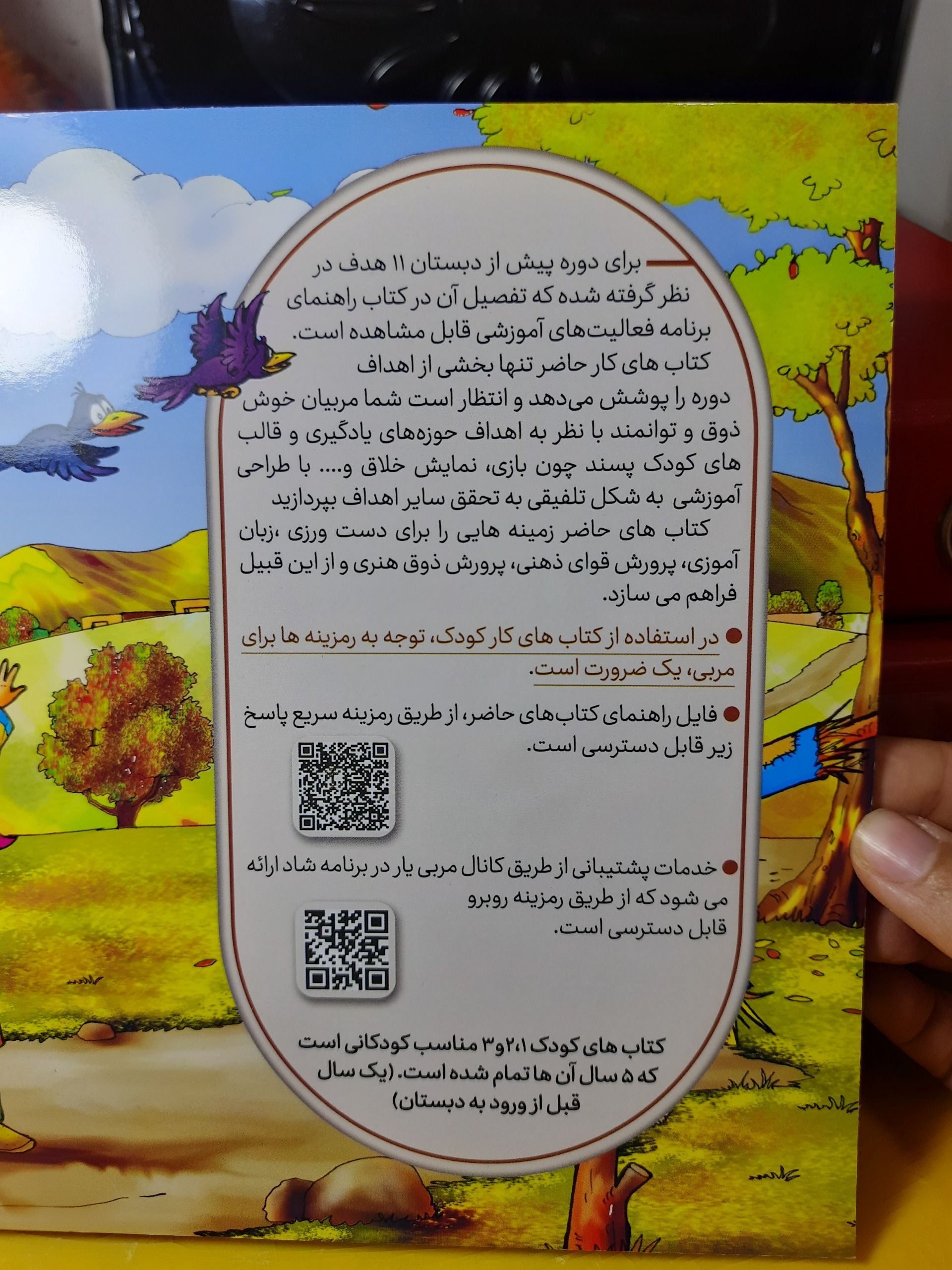 کد 1363 مجموعه سه جلدی کتاب کودک /ویژه 3 فصل پاییز زمستان و بهار /صفحات تمام رنگی مصور همراه با برچسبهای قابل استفاده/ گروه مولفین کارگروه تولید محتوای کودکستانهای استانها /برای دوره پیش از دبستان و دبستانیها/کتاب به صورت ویژهای طراحی شده که برای دستیابی به اطلاعات هر صفحه و حل هر صفحه با استفاده از رمزینههای قرار داده شده در بالای تصاویر توضیحات بصورت صوتی و تصویری پخش میشود/ قیمت هر جلد 100تومان میباشد با تخفیف استثنایی خرید کنید/