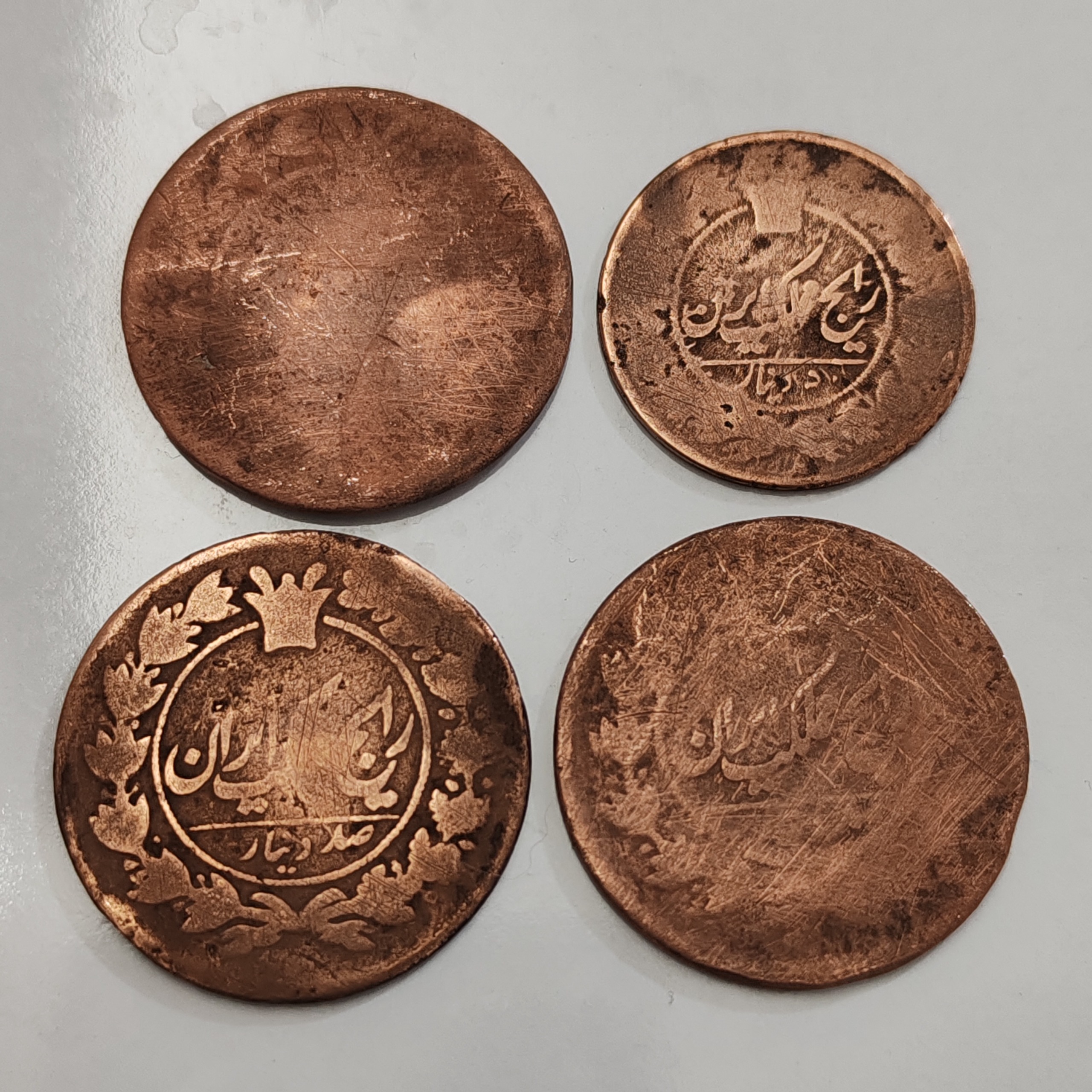 4عددسکه فوق نایاب 100دیناری50دیناری مسی رایج قاجار