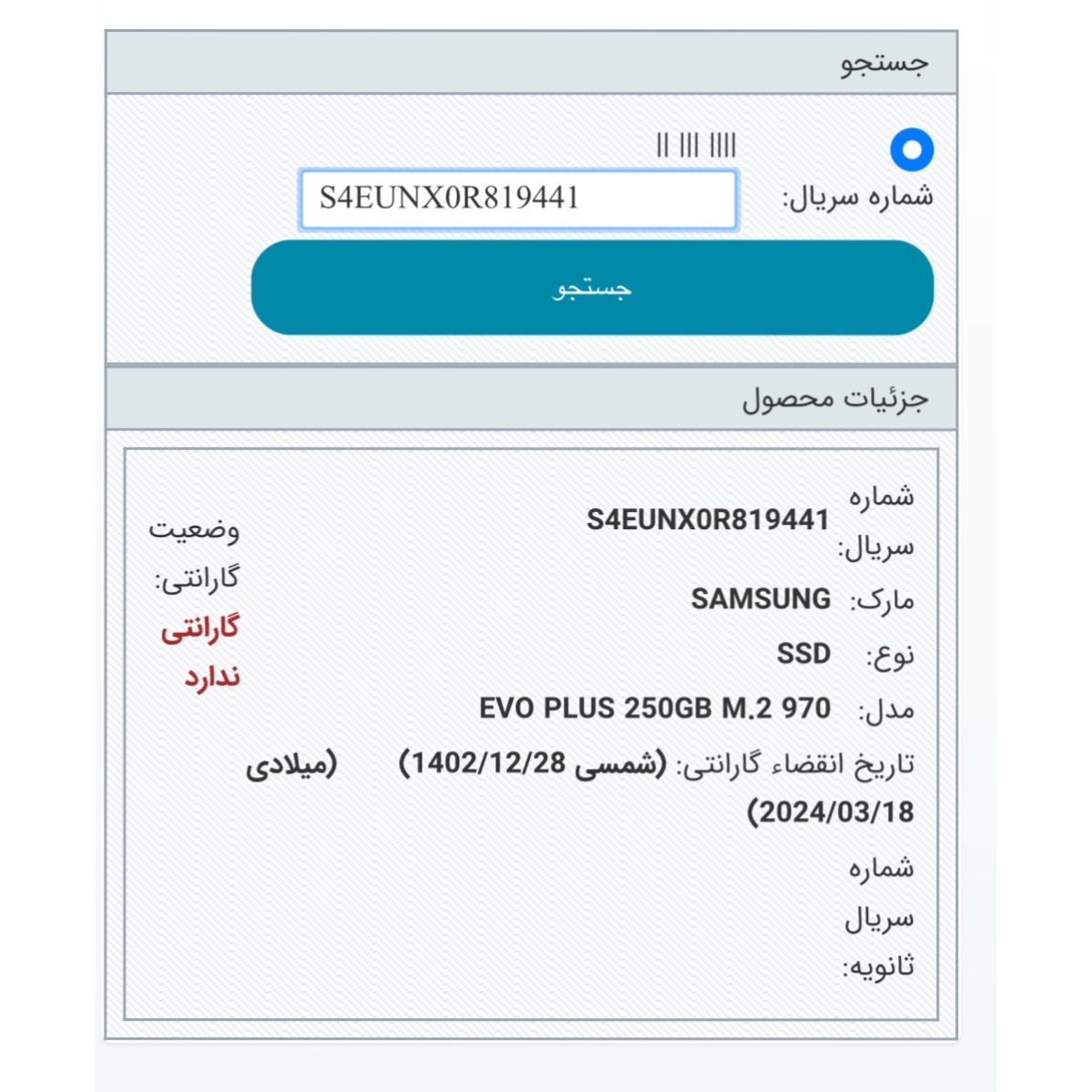 حافظه اس اس دی اینترنال سامسونگ مدل 970EVO Plus M.2 2280 NVMe ظرفیت 250 گیگابایت