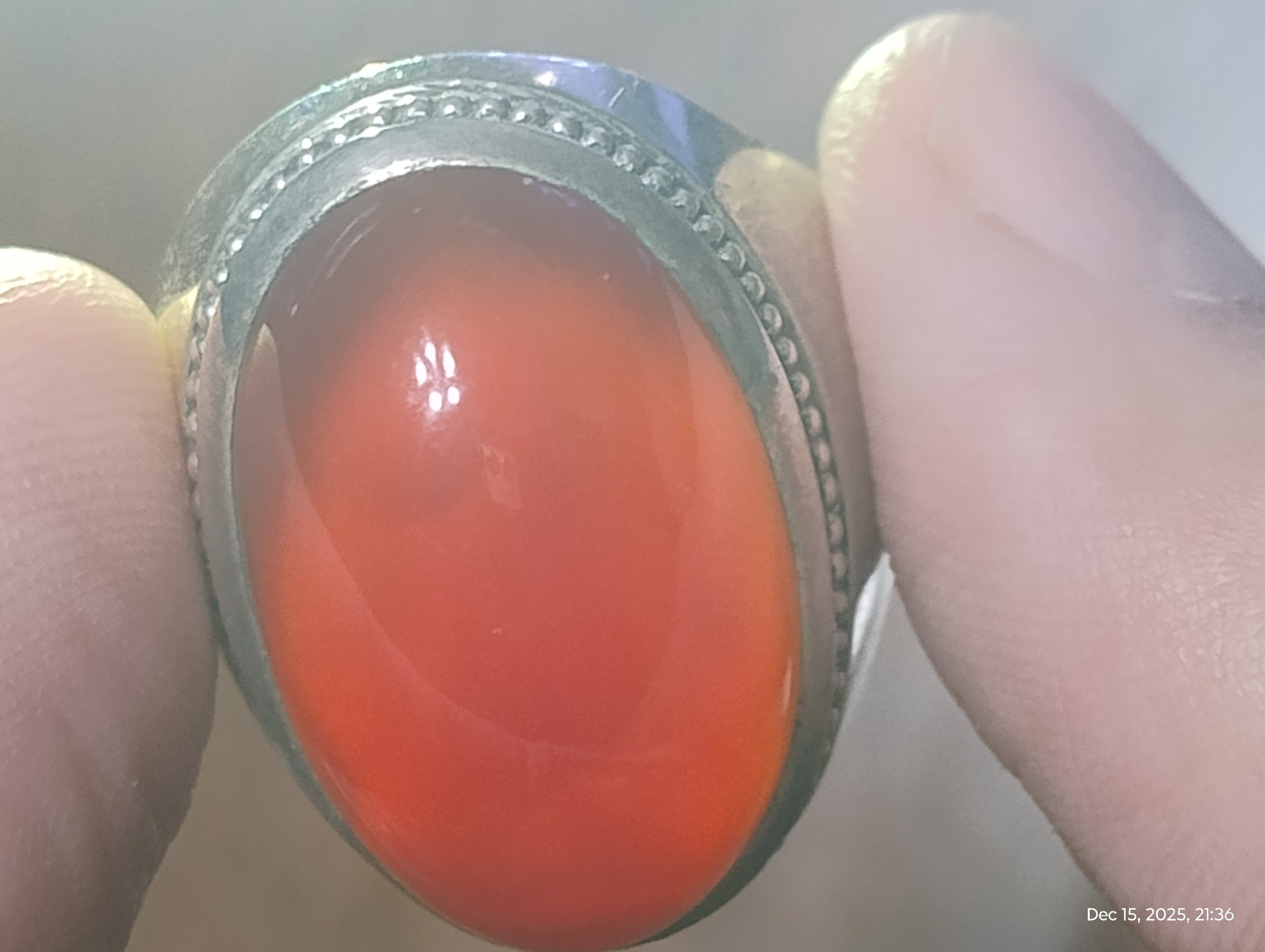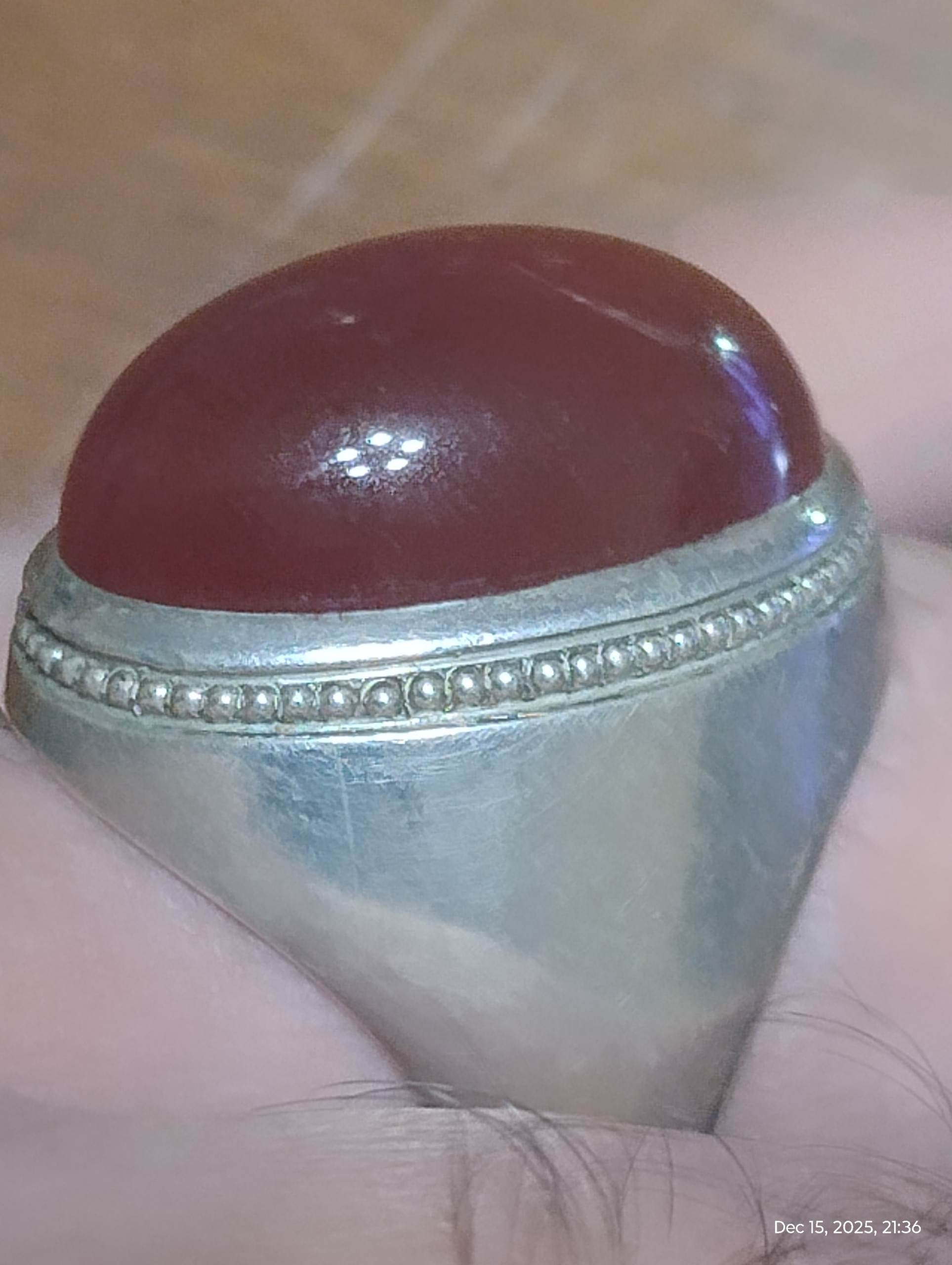انگشتر دستساز سفارشی و عقیق سرخ یمنی بسیار زیبا و خوش قواره رکاب فنی با گارواسه زنی های منظم مجلسی و پر برکت