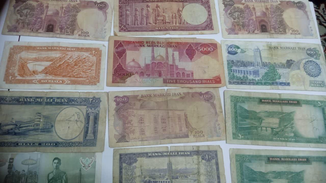 16 عدد اسکناس با ارزش قدیمی مطابق تصویر
