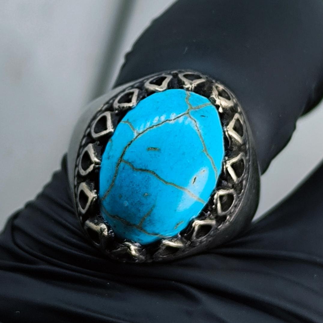 فیروزه ناب مصر رگه دار طلاکوب شده روشن و شفاف زنده یک کار تمام با اصالت رکاب کلاسیک عیار متوسط استاندارد به علت نوسانات قیمت ممکنه از 925 درصد کمتری خالصی داشته باشند