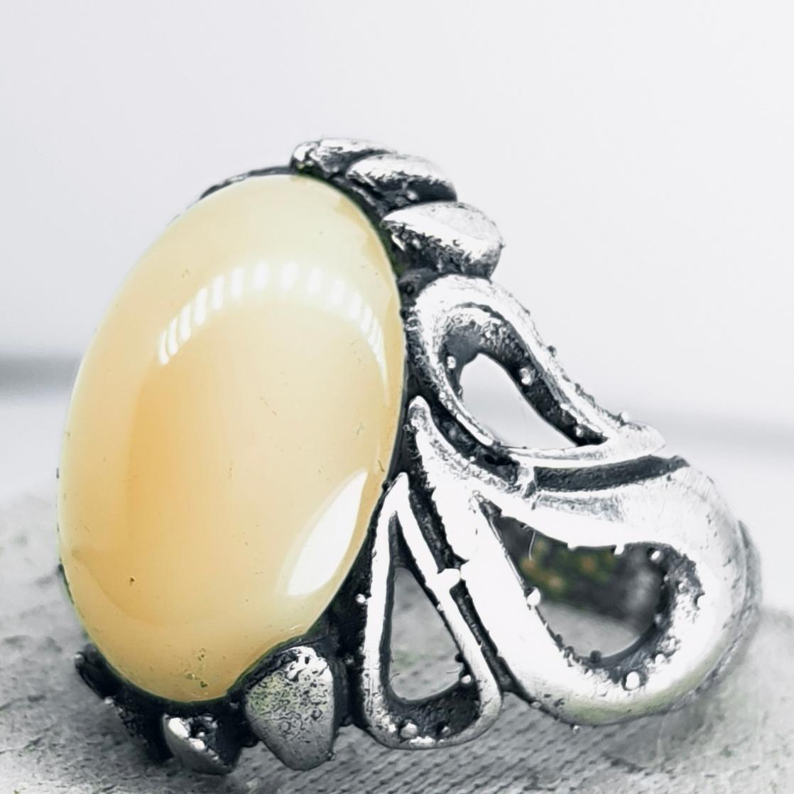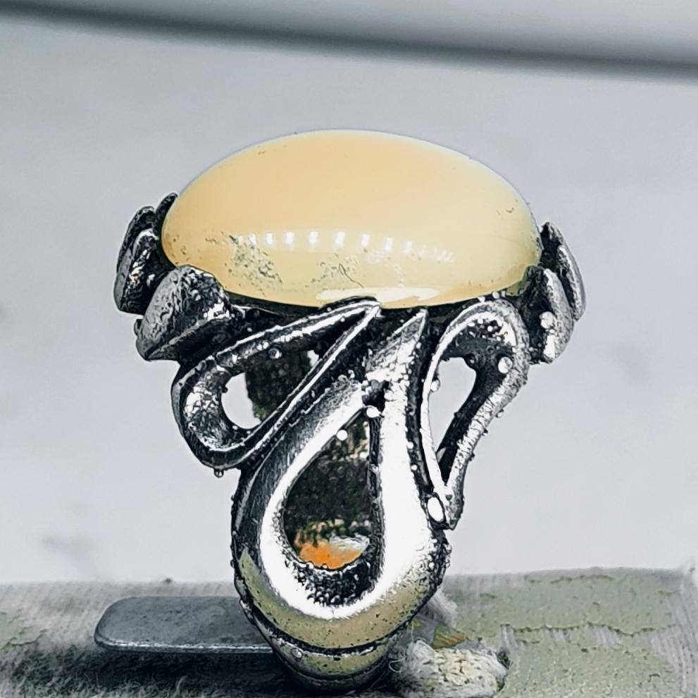 عقیق سفید یخی یمنی خال دار شفتی بسیار کمیاب صددرصد طبیعی و با طبع خالص و بدون کوچک ترین دستسازی و به سازی منظره واضح ابر و مه و باد