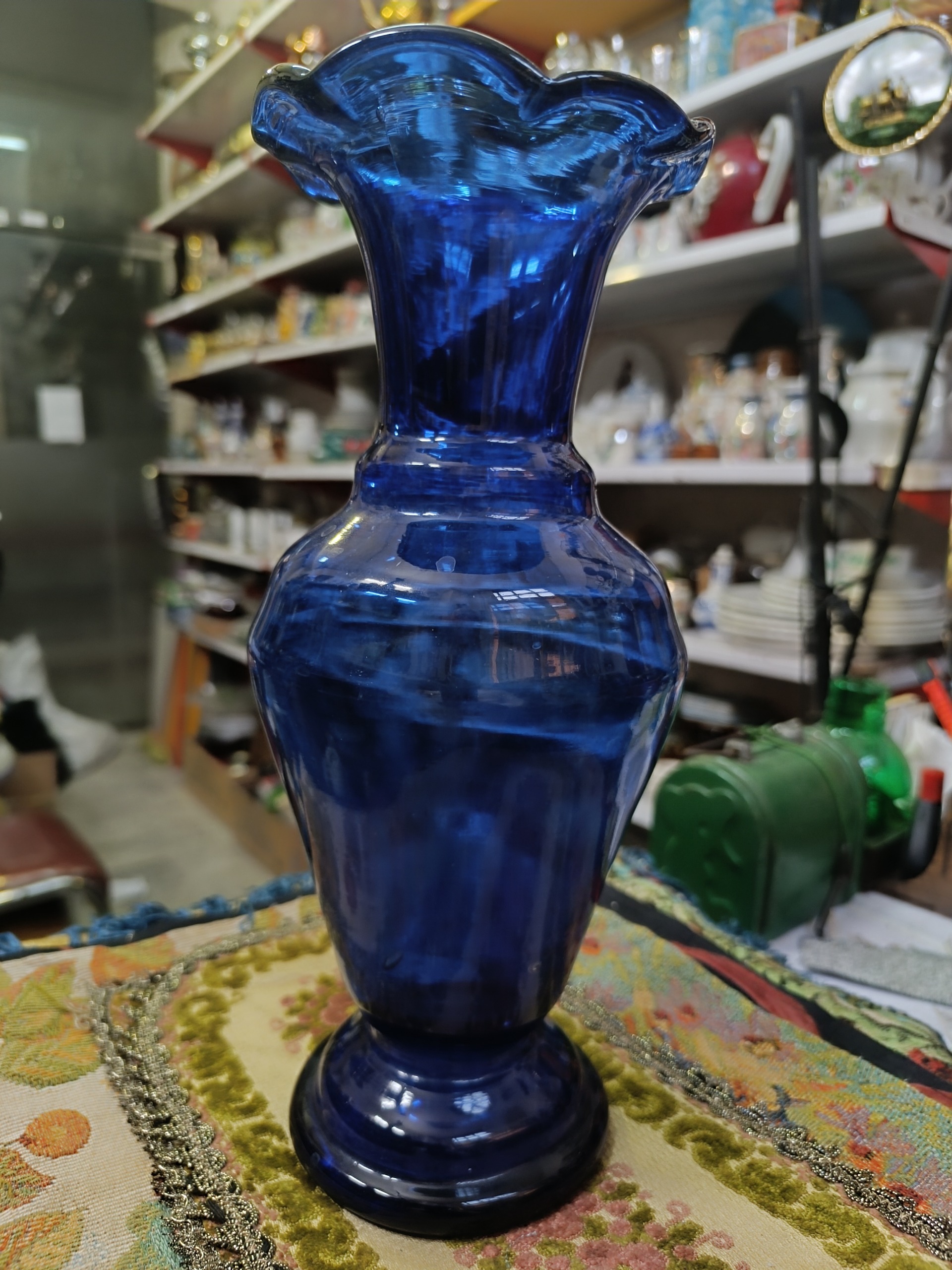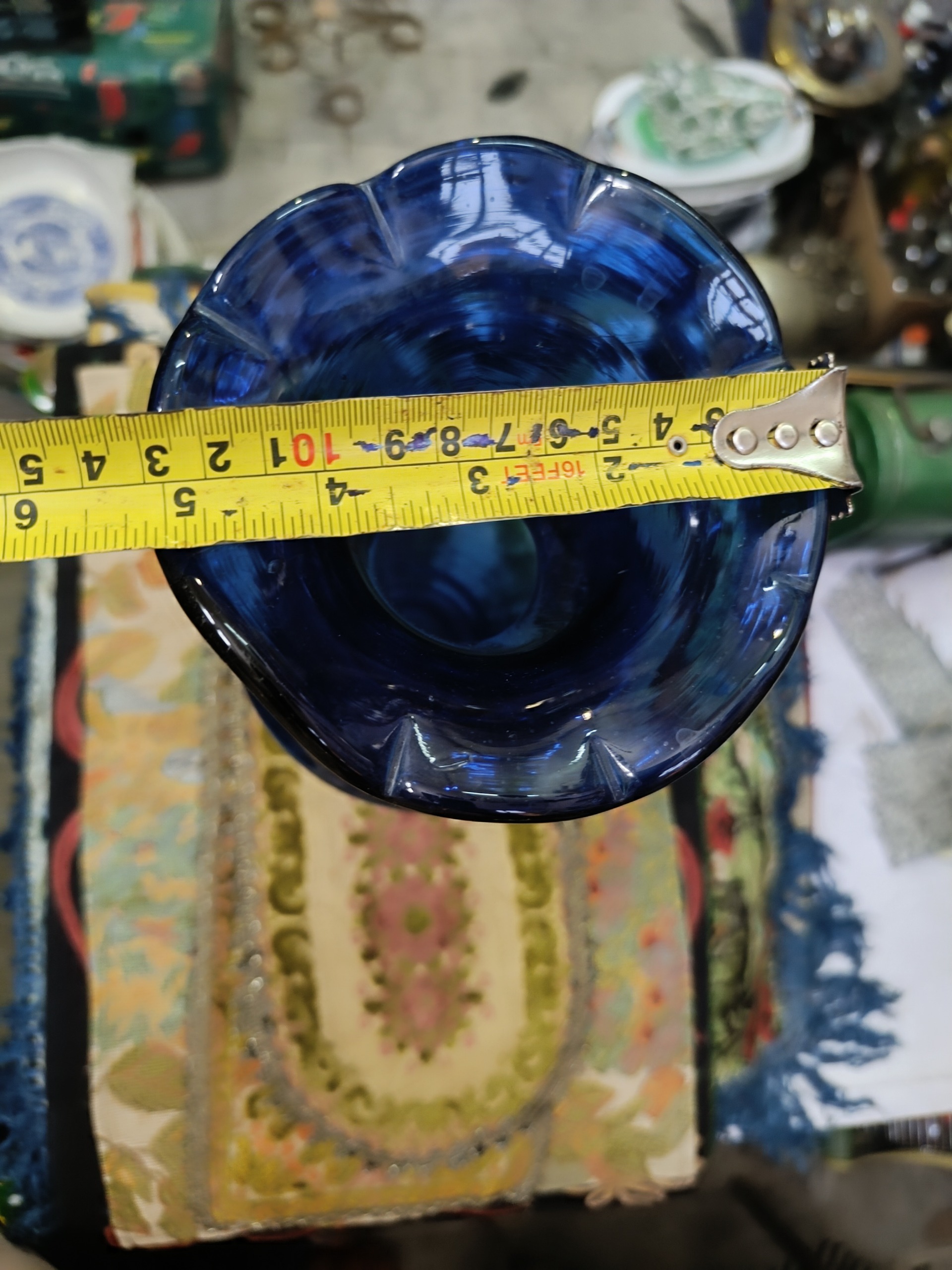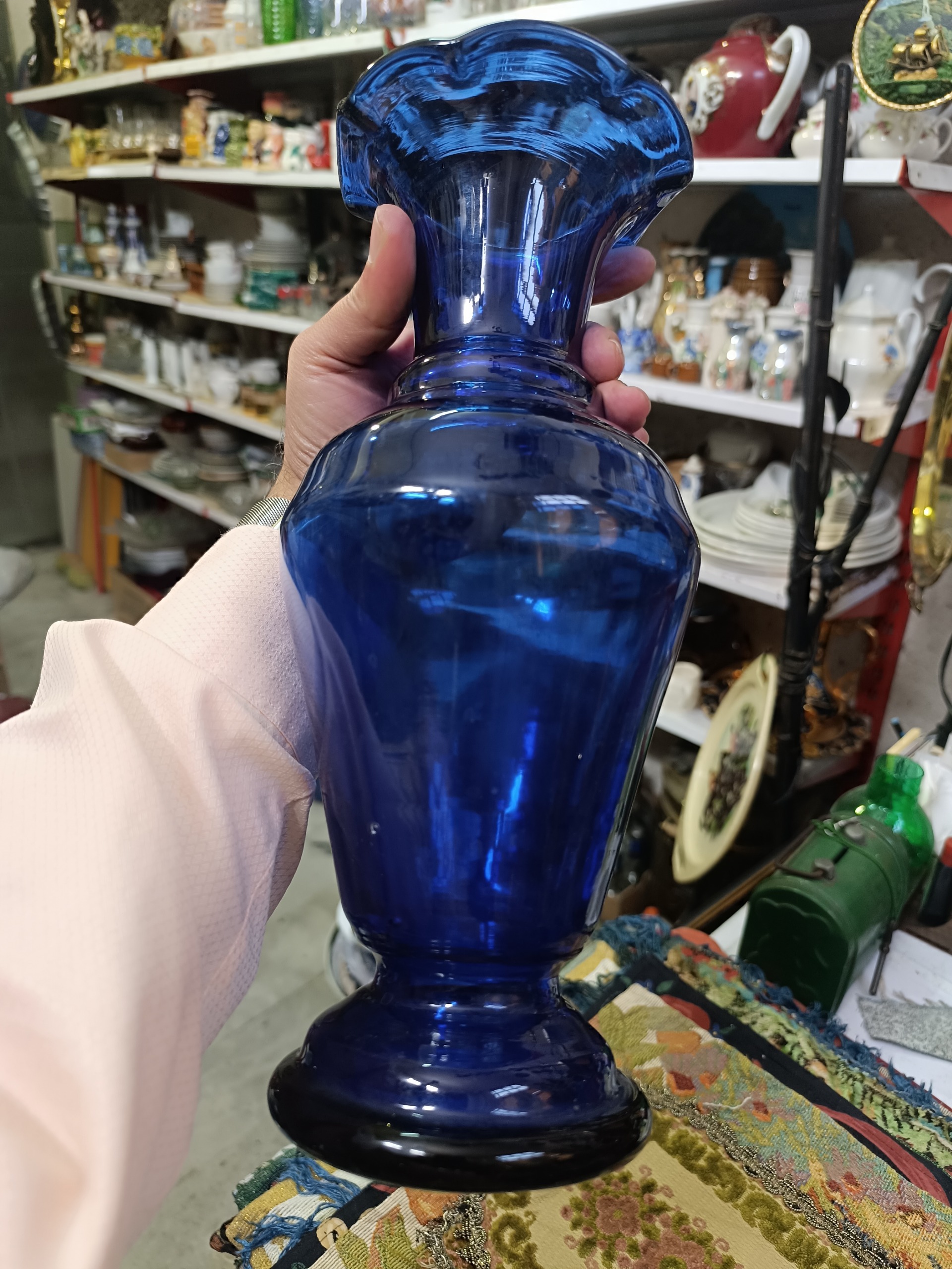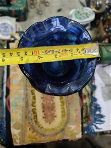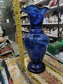 یک عدد گلدان آبی ، شیشه رنگی ، کار دست ، قدیمی مربوط به دوره پهلوی ، سالم و تمیز ، کیفیت و ابعاد مطابق تصویر