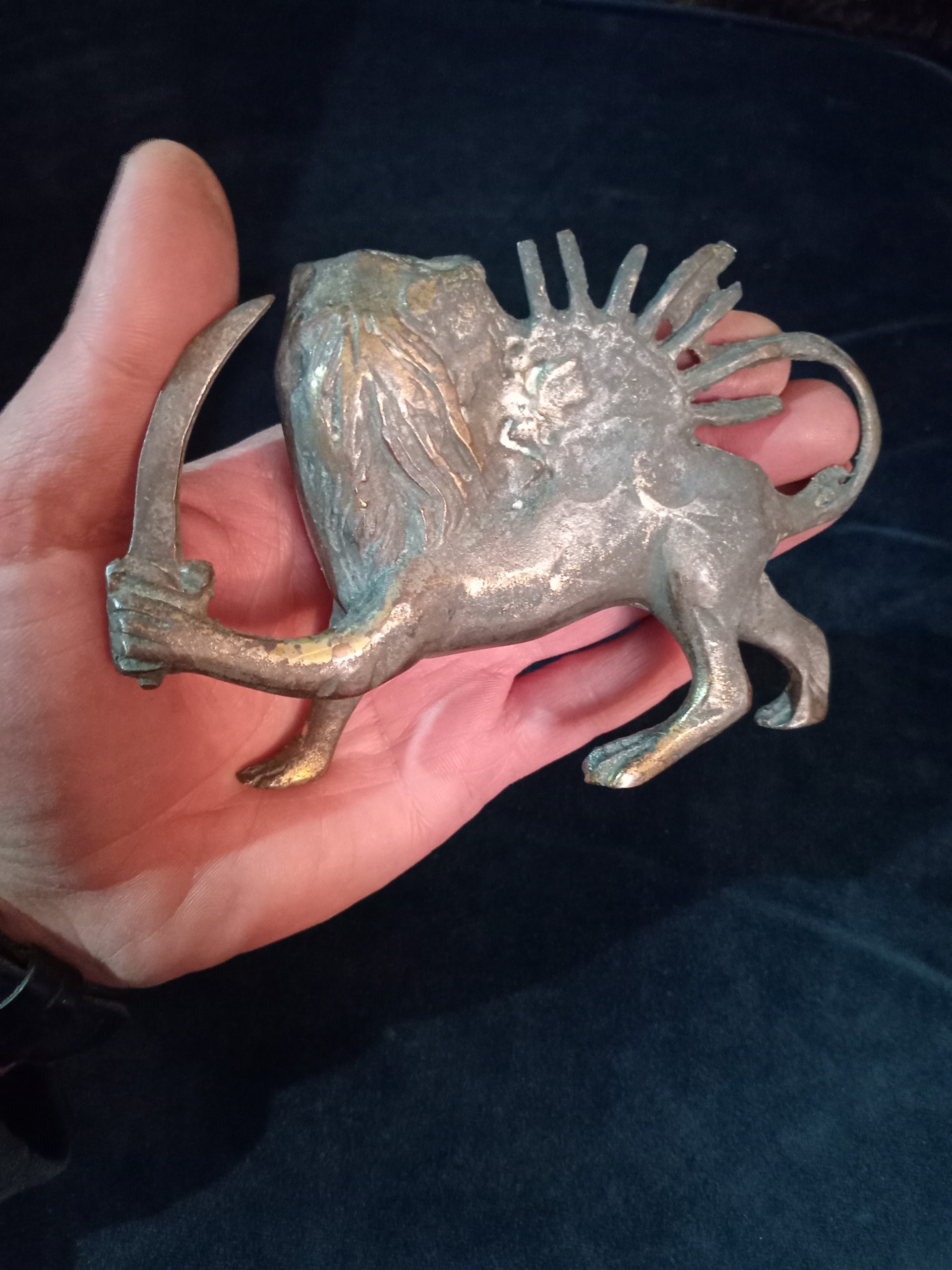 مجسمه شیرخورشید برنجی زیبا پهلوی دوم کلکسیونی