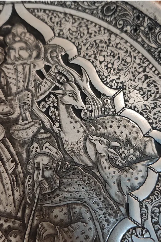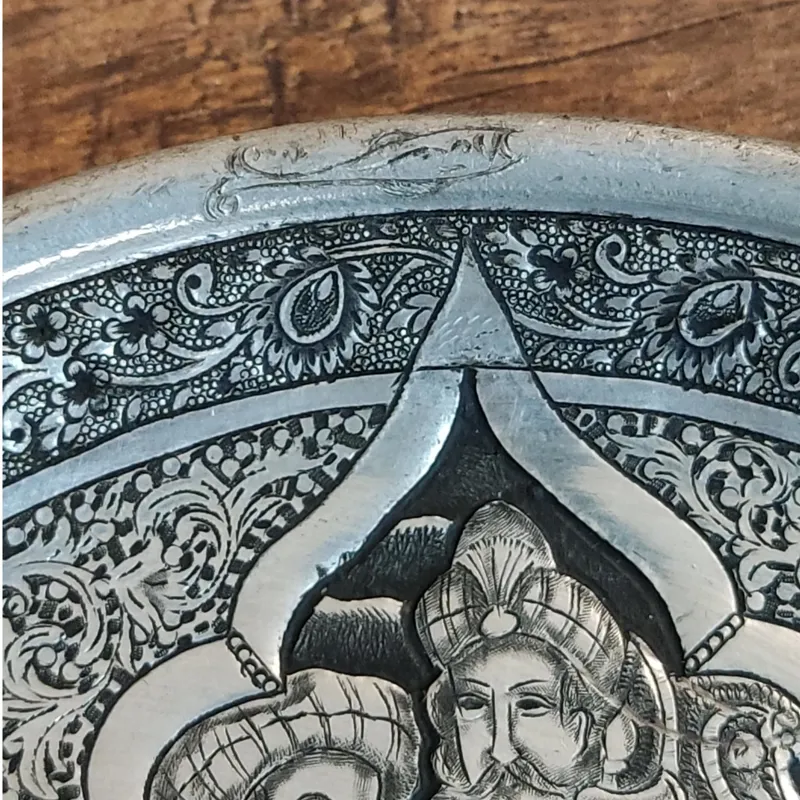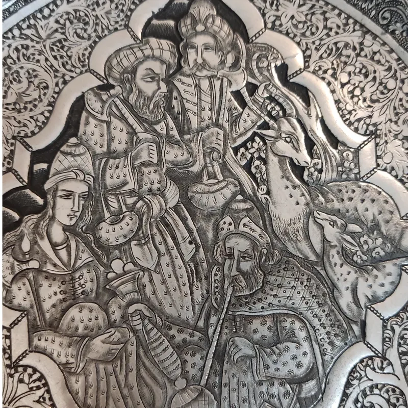 بشقاب مسی قلم استاد بزرگ قلمرنی ایران امیر ساعی