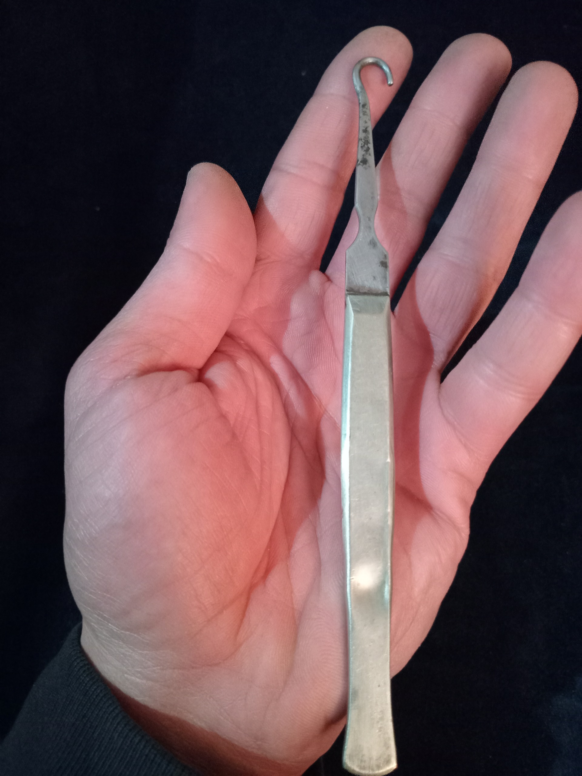 اروپایی دسته ورشاب قلاب فولادی.کار کهنه کلکسیونی کمیاب بیایین بخرید طبق عکس دسته یکم فرورفتگی داره دوستان