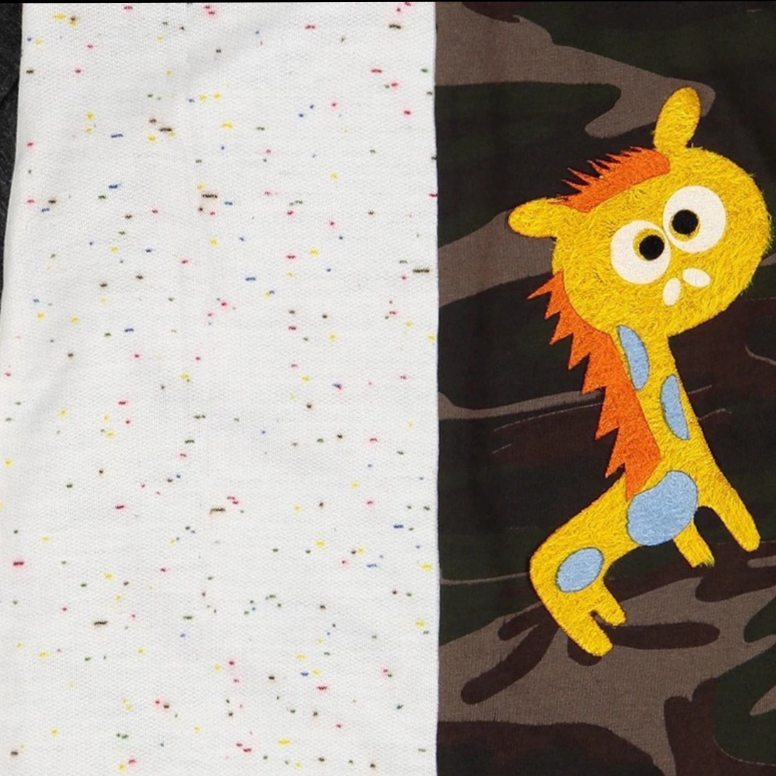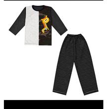 ست راحتی طرح زرافه شامل تیشرت آستین بلند و شلوار راه راه میباشد. جنس تیشرت نخی و کمی کشی است. این ست راحتی مناسب دختر و پسر شما در ایران تولید شده است. فاصله بین دو زیربغل 29 سانتیمتر و سرشانه 6 سانتیمتر است بلندی آستین 24 سانتیمتر و بلندی لباس 37 سانتی متر است کمر شلوار درحالت بدون کشیدگی 22 سانتی متر و در حالت کشیدگی 48 سانتیمتر همچنین بلندی فاق شلوار 22 سانتیمتر و بلندی قد شلوار 45 سانتیمتر است