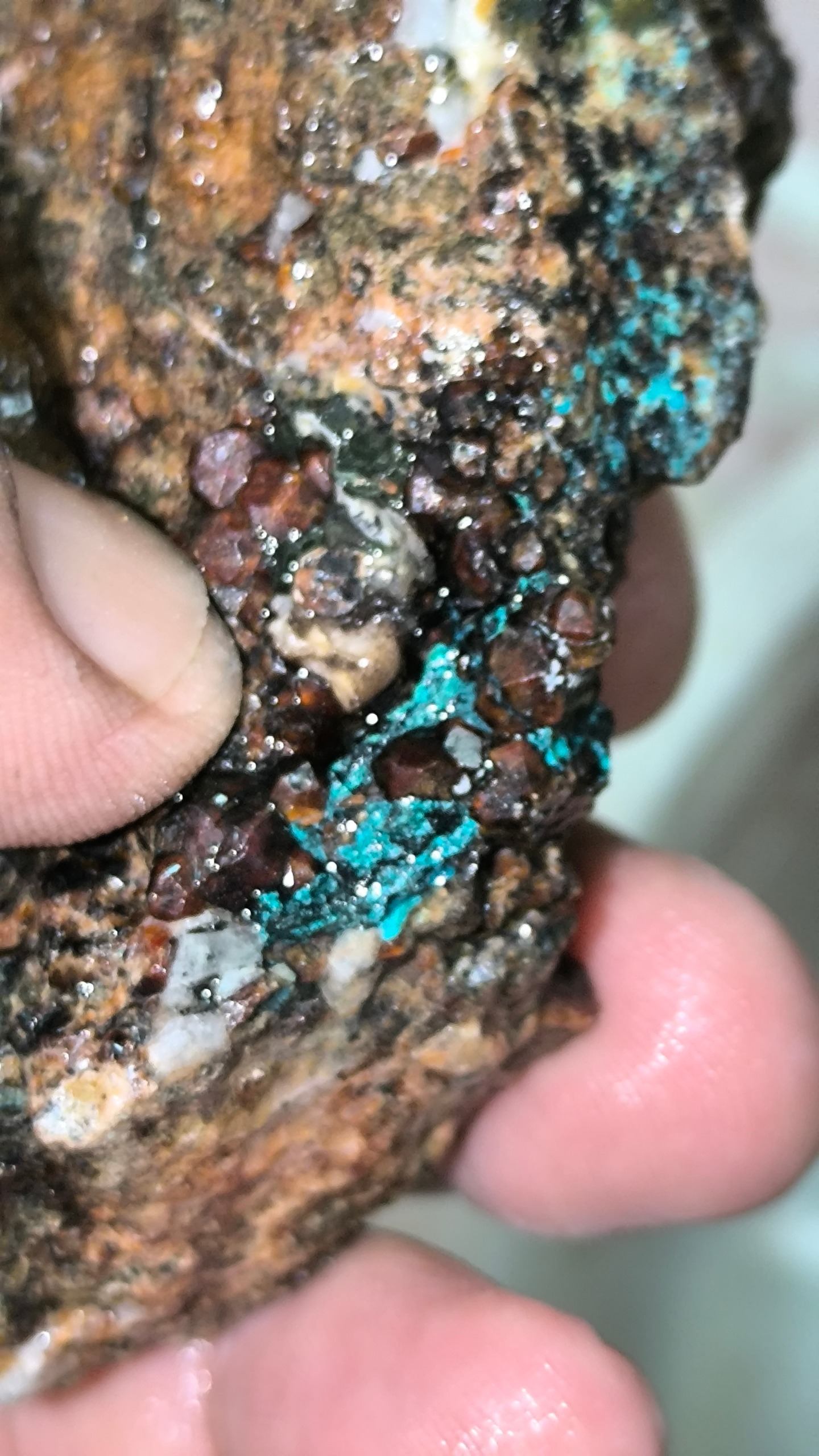سنگ راف مالاکیت وارداتی با همرشدی گارنت یا همون یاقوت در اندازه های مختلف داخل سنگ مالاکیت هم رشدی داشته تقریبا 15 درصد سنگ رو پوشش داده راف مالاکیت کیلویی فروش میره یا قطعه ای اما گارنت قیراطی فروش میره بسته به کیفیتش کمترین قیمت گارنت قیراطی 120 هزار تومان هستش باید اول جدا سازی کنید گارنت هاشو بعد سنگ مالاکیت رو برش بدید پولیش بزنبد یا داخل دستگاه تامبلر بریزید بعد بفروشید این جوری یکم زحمت داره ولی هر یک کیلو براتون راحت بیست میلیون تومان خیر داره شایدم بیشتر بسته به خودتون داره من یه مقدار از یه تیکه سنگ جدا کردم عکسشو گذاشتم تیکه هاش مشخص هست کوچک بزرگ زیاد داره ولی از یه قیراطش هم دست بر ندارید چون واقعا حیف هست خود مالاکیت هم به خاطر اینکه وارداتی هست تو ایران قیمت نگین هاش یا تامبلر شدش بالاس منصفانه قیمت بدیذ ادم باید خودش معرفت به خرج بده