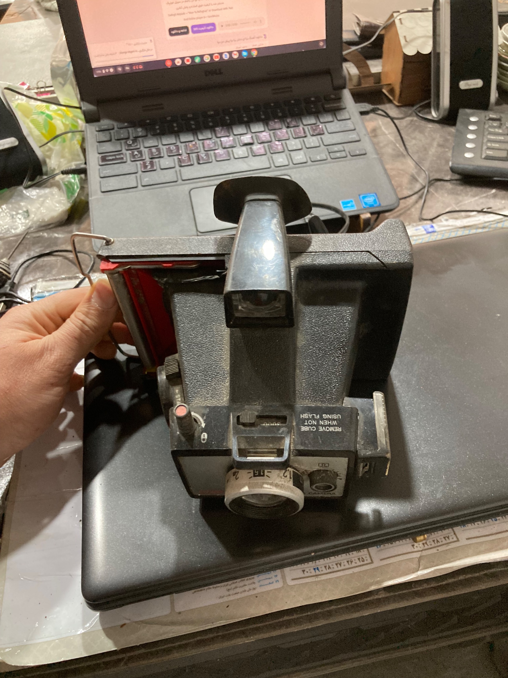 دوربین عکاسی قدیمی ی مقدار از بغل قابش شکسته برای همین کمتر گذاشتم ک از جلو بخوای دکوری بزاری اصلا معلوم نیست