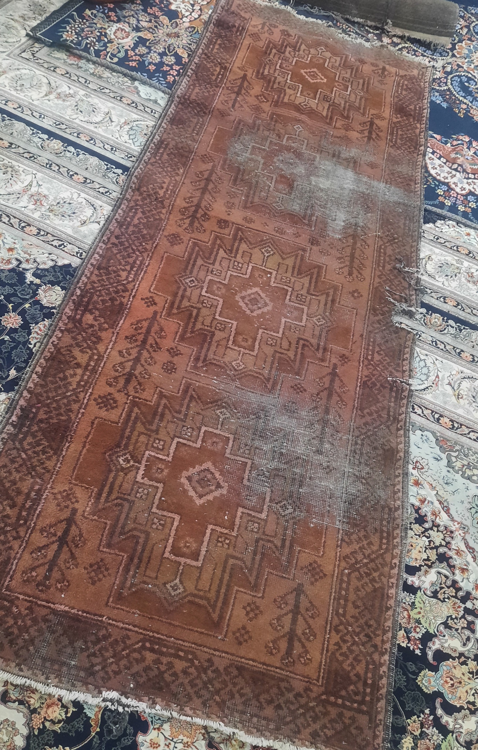 قالیچه دوم دارای چند بخش با پارگی و ساییدگی (قابل ترمیم)