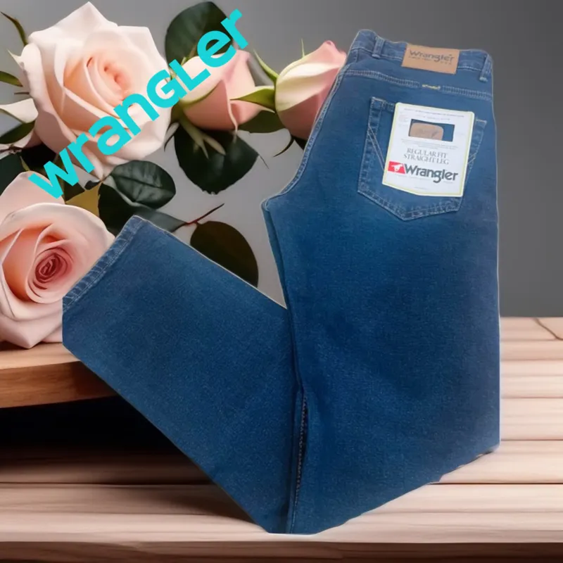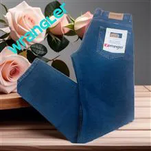 شلوار لی رانگلر آبی تیره نخ قهوه ای
