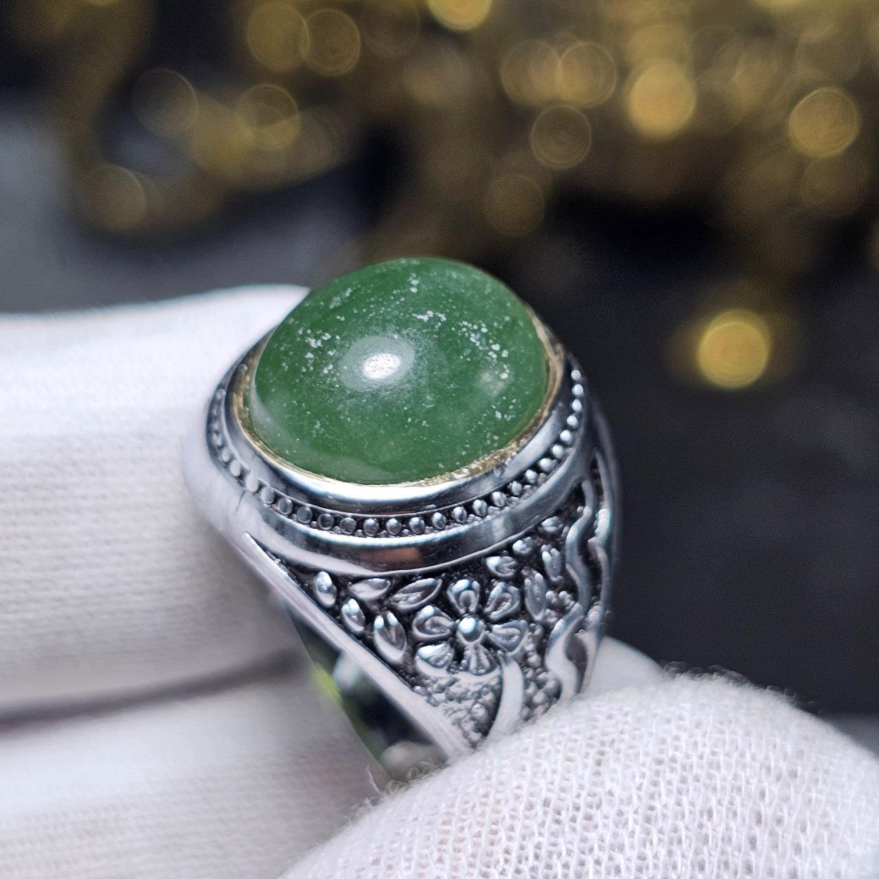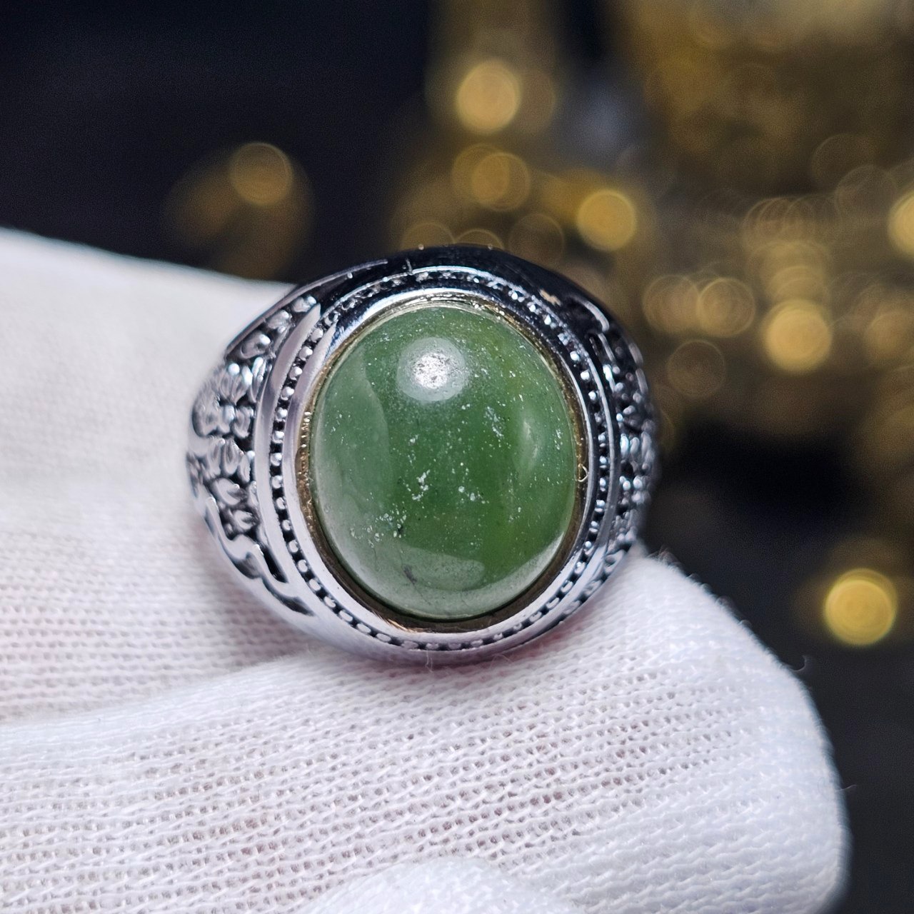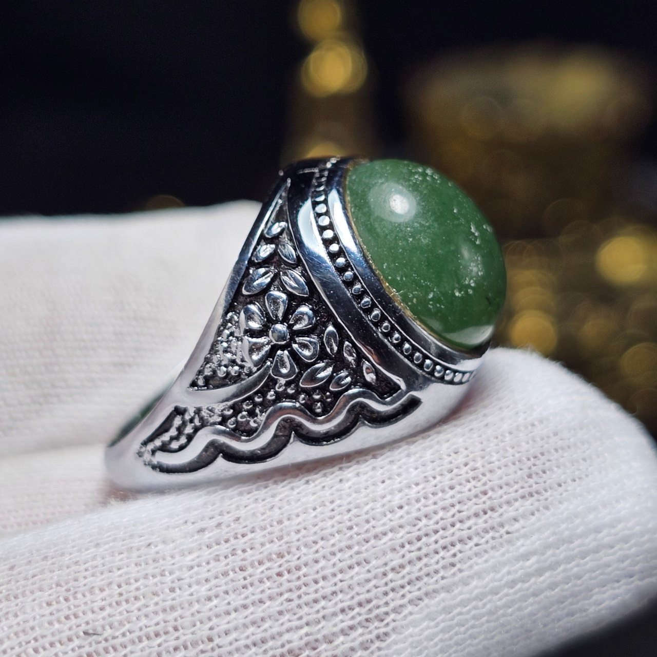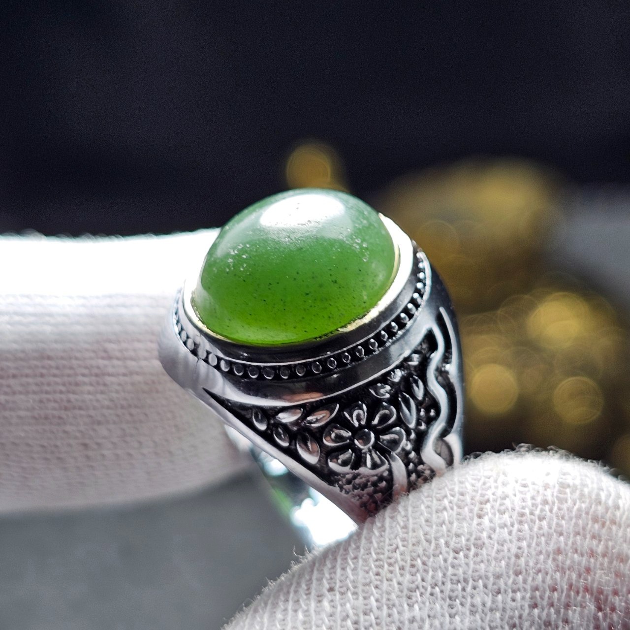 انگشتر نقره روس با سنگ یشم معدنی کد 37025