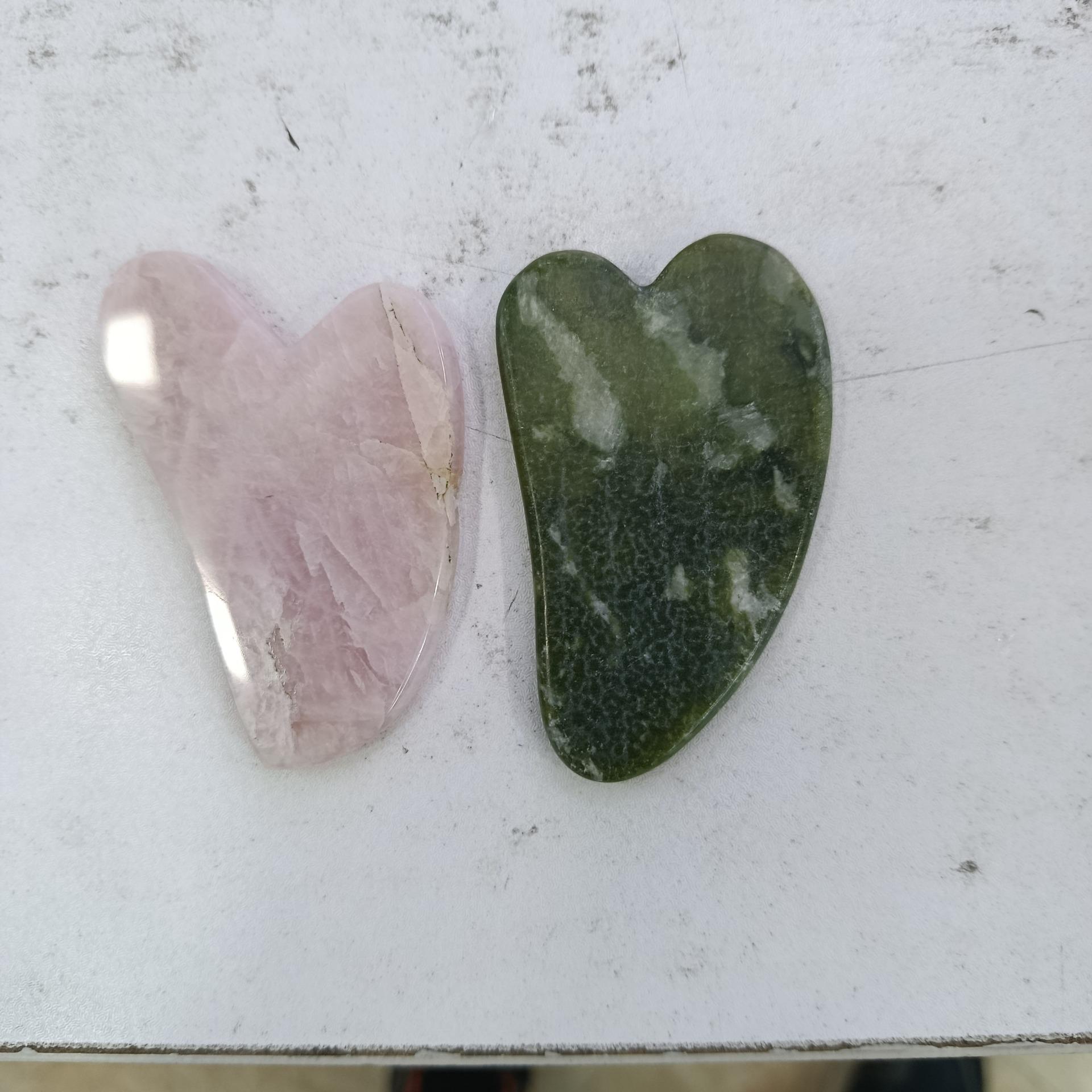 پک دو تایی گواشا سنگ طبیعی کوارتز صورتی و سرپانتین سبز