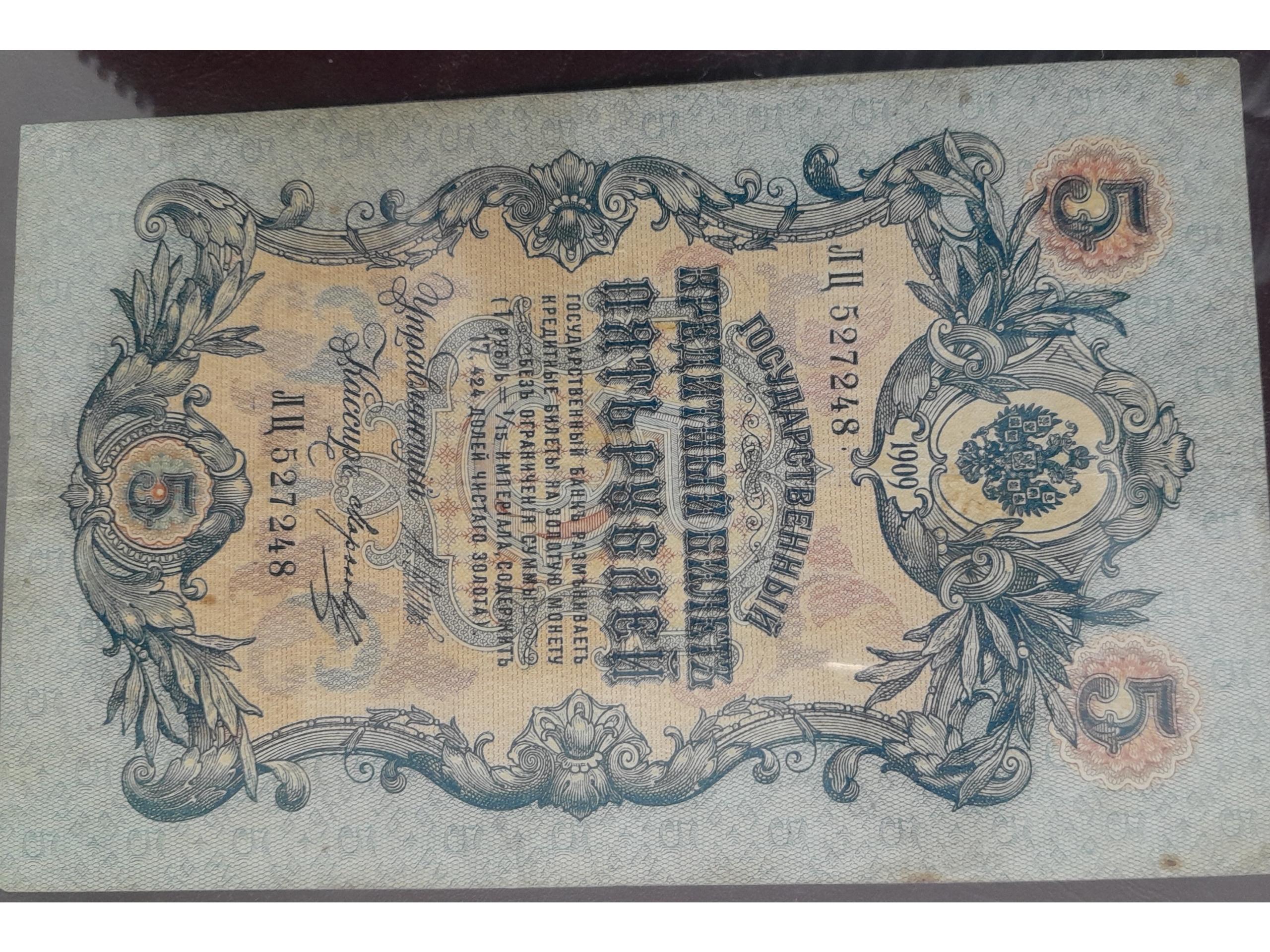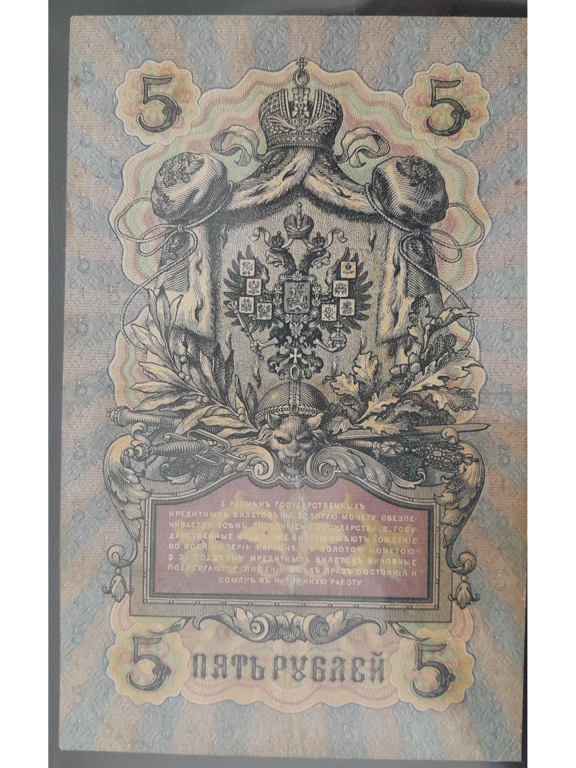 تک اسکناس 5 روبل روسیه به تاریخ 1909