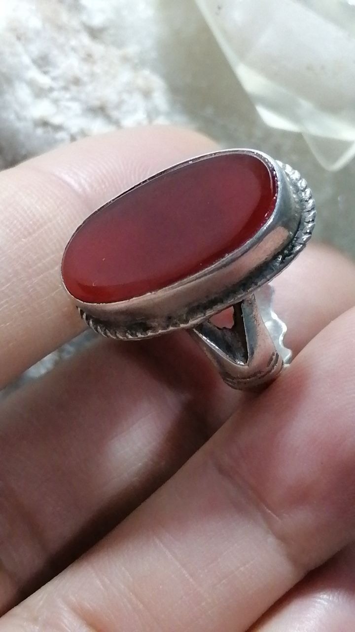 انگشتر نقره عقیق قرمز دستسازنسبتا کهنه سایز60تا61 وزن بالای 7 گرم ابعاد نگین 22در12 میل قیمت 2550