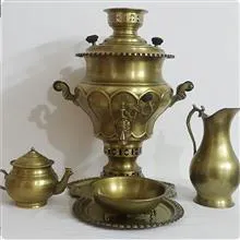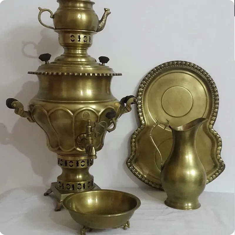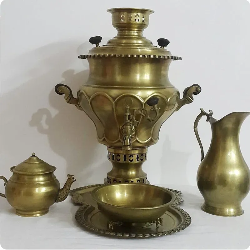 سرویس سماور زغالی جنس برنج سایز 6لیتری
