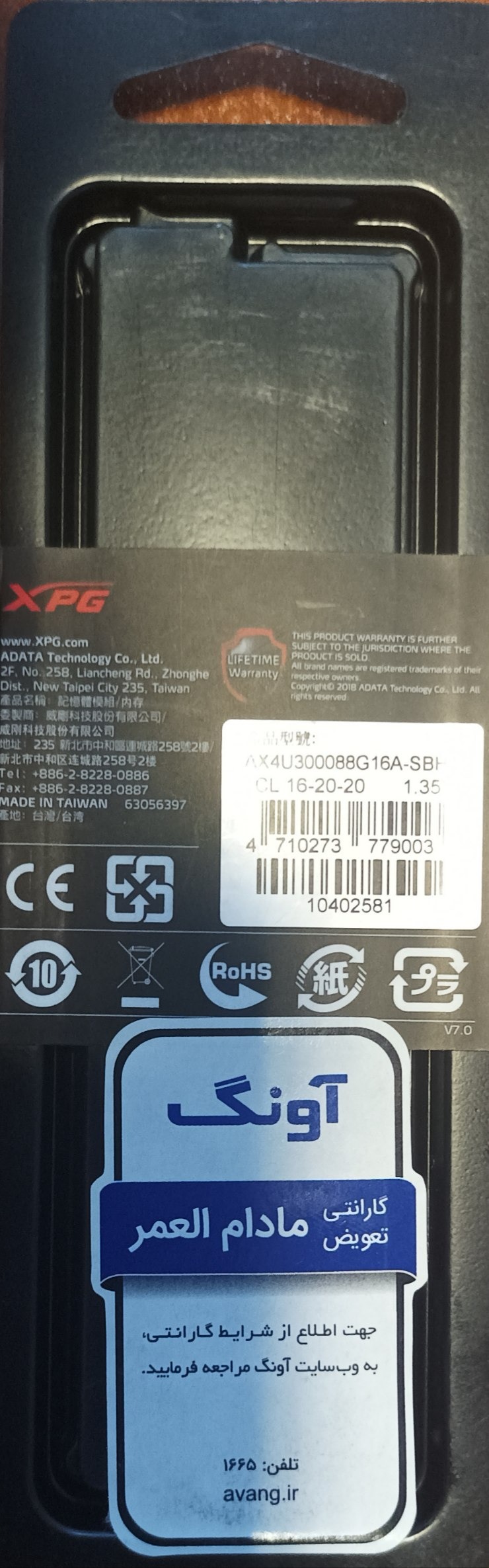 رم Adata XPG 8GB DDR4 آکبند گارانتی مادام العمر