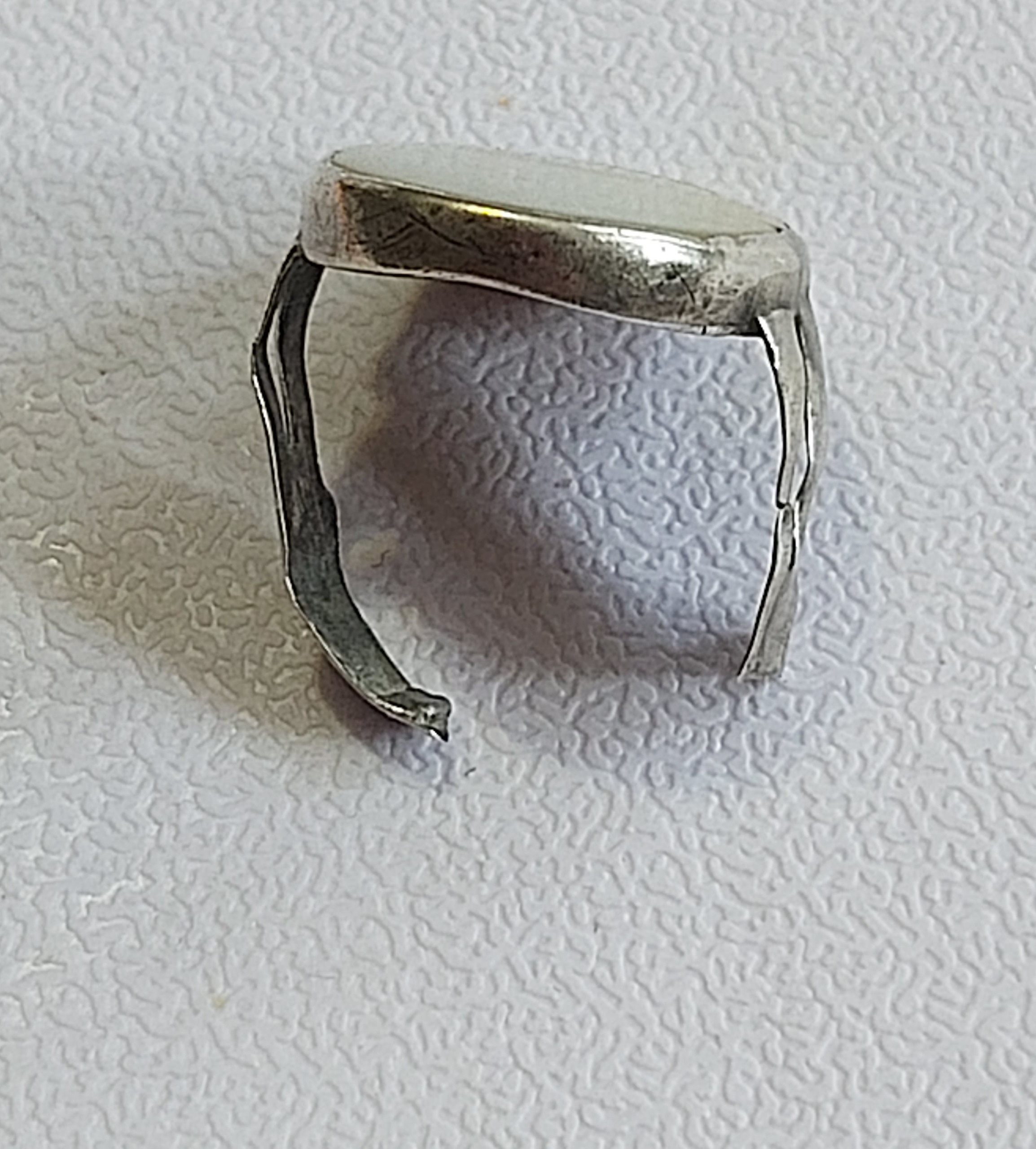 سنگ انگشتر قدیمی و زیباست (در نور الوان و هفت رنگ میزنه)..سنگ ارزشمند معدنی ..بنظرم سنگ اپال باش ه..رنگ سفید و این که در برخورد با نور رنگین کمانی و رنگ ترکیبی و شکنندگی سنگ و گاهی از نکات رو میشه به سنگ ارزشمند اوپال مربوط دونست..