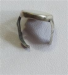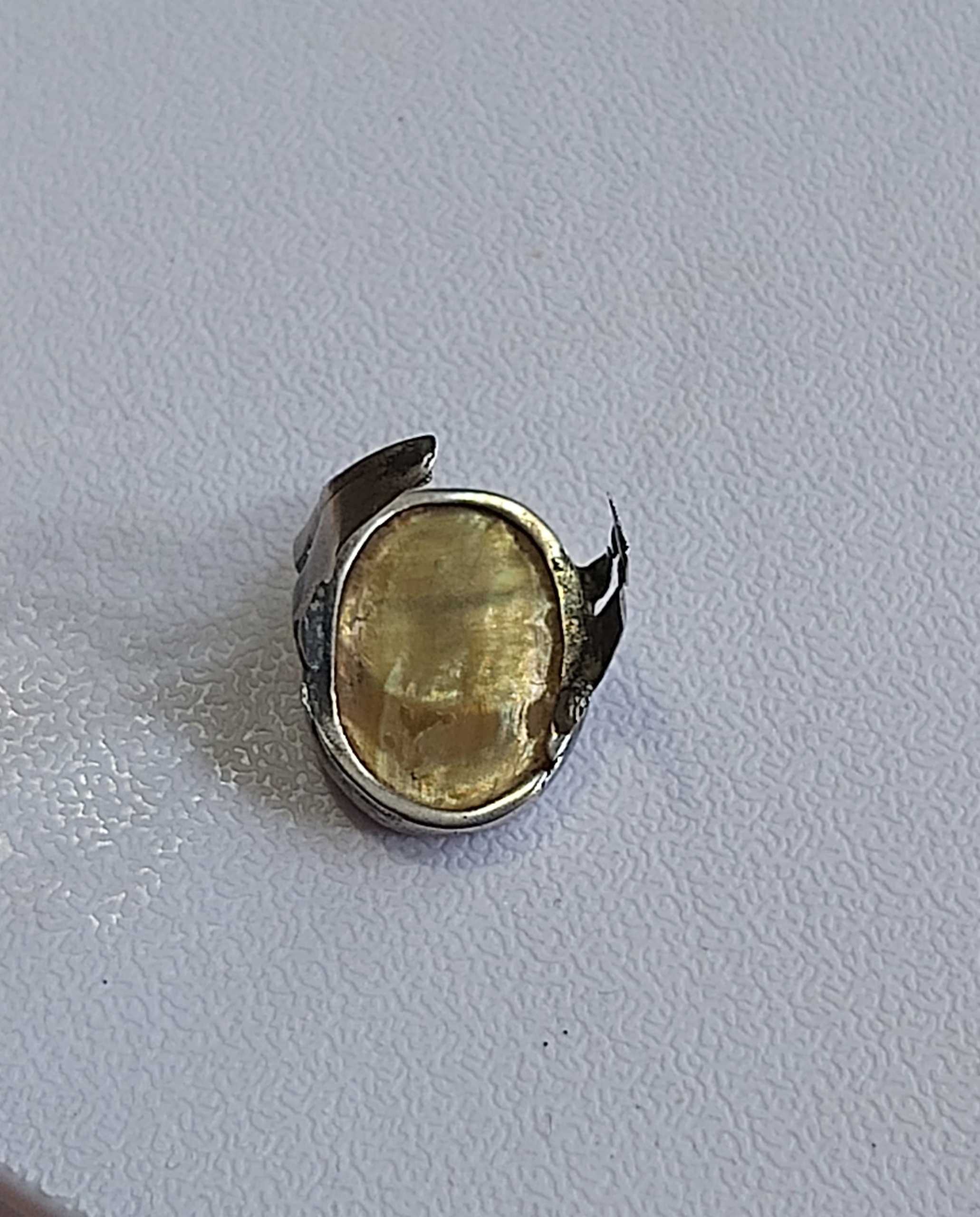 انگشتر با رکاب نقره کهنه و قدیمی ..دایره رکاب سالم و کامل ه..ولی حلقه انگشتی انگشتر شکسته طبق تصویر..نیاز به ترمیم داره که دوباره کامل و شکیل و زیبا بش ه..