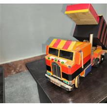 ماکت کامیون کنورث کمپرسی ،چرخ ها و شاسی چوبی بدنه از مقوای 3لایه ،چرخ فرمان دستی با یک پین برای جابجایی چرخ دستی، قیمت 750000 تومان و هزینه ی اداره پست هم با مشتری است
