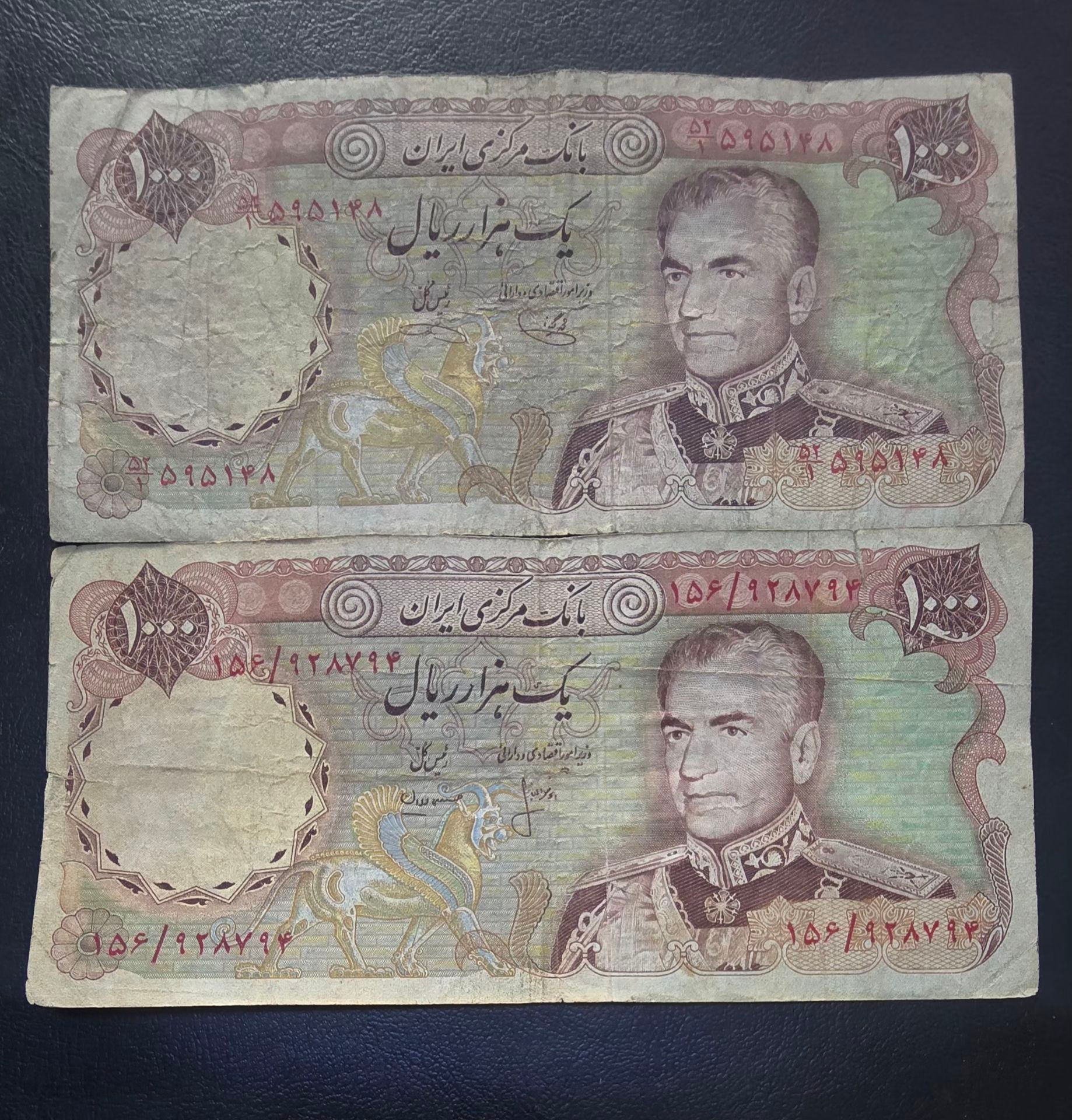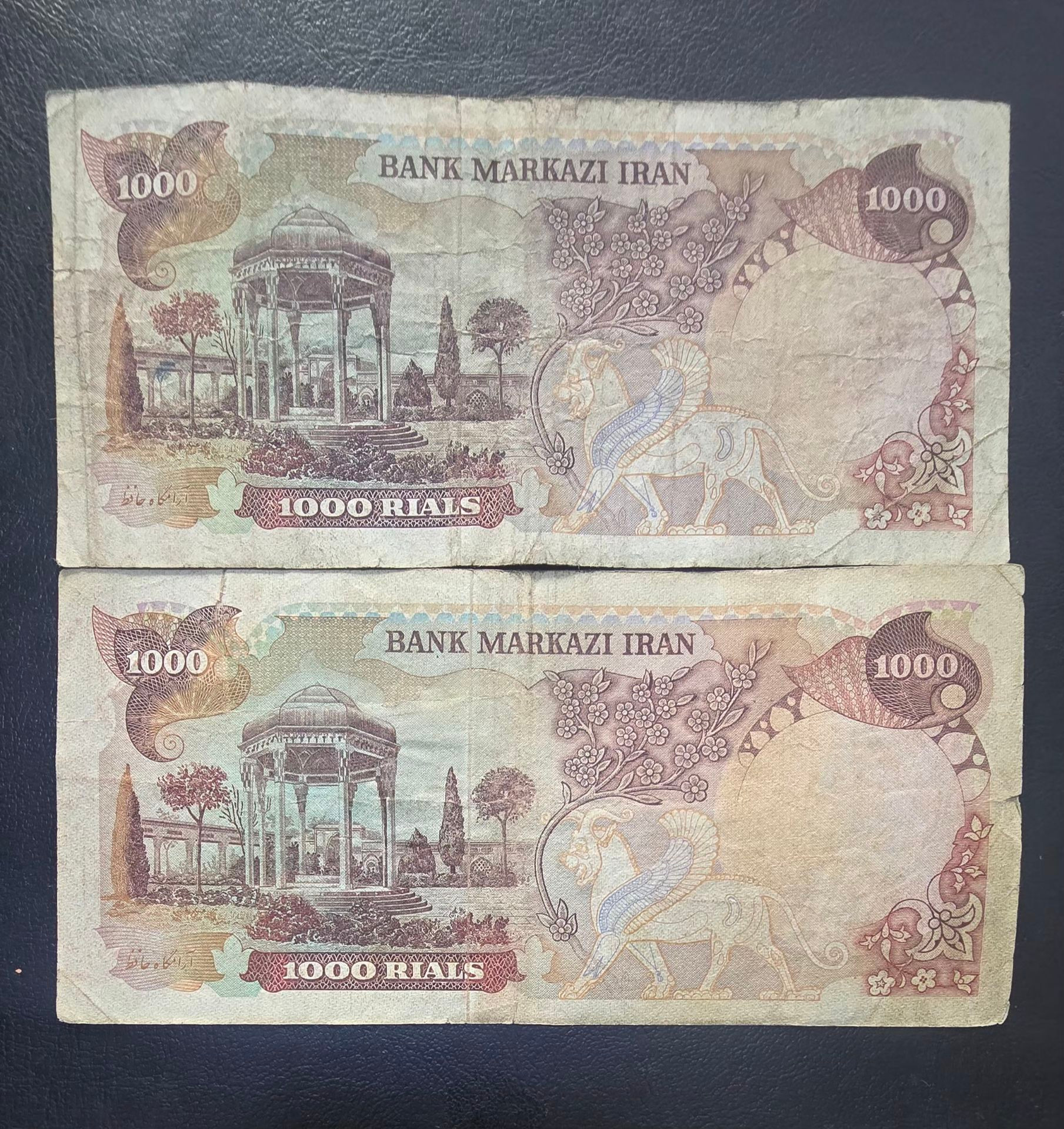 2 برگ اسکناس 1000 ریال شونه پهن امضاء متفاوت