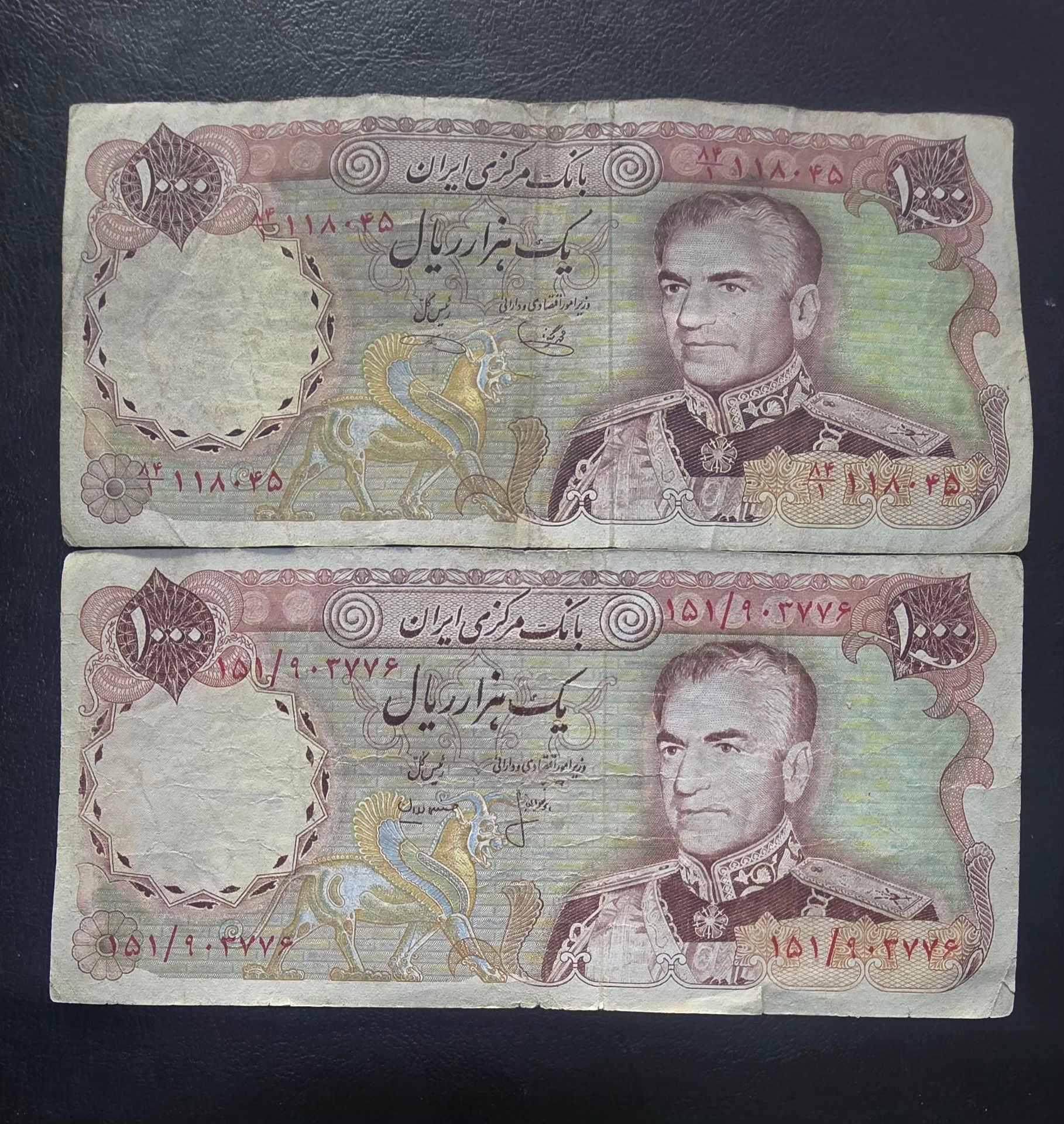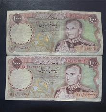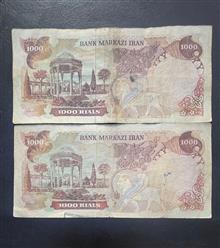 2 برگ اسکناس 1000 ریال شونه پهن امضاء متفاوت