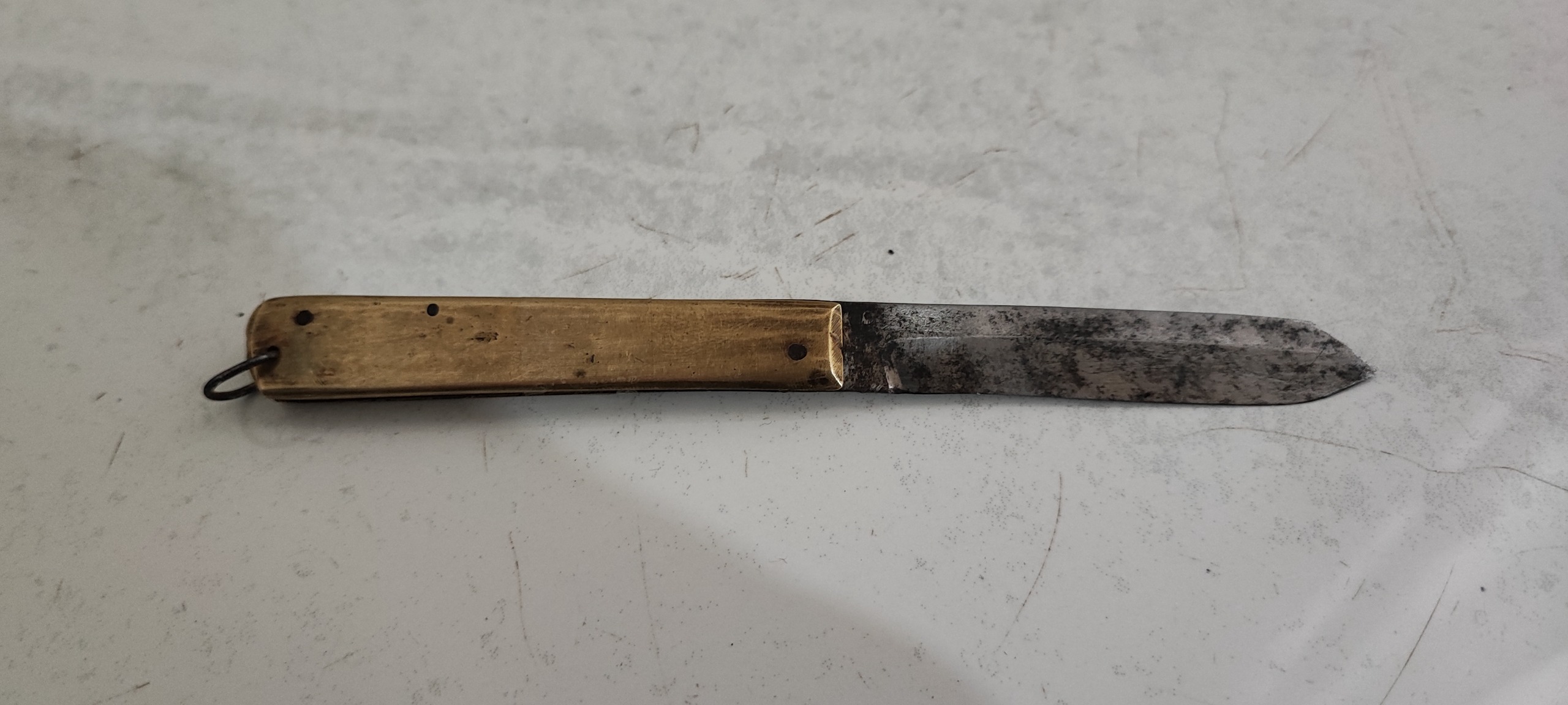 15/5 سانت طول، تیغ فولادی و دسته برنجی، بکر و نایاب و زیبا و کلکسیونی
