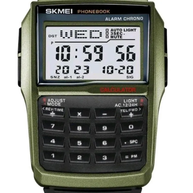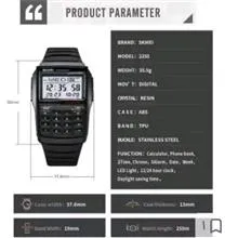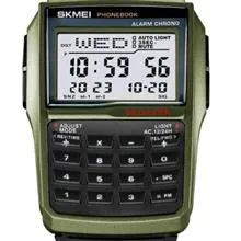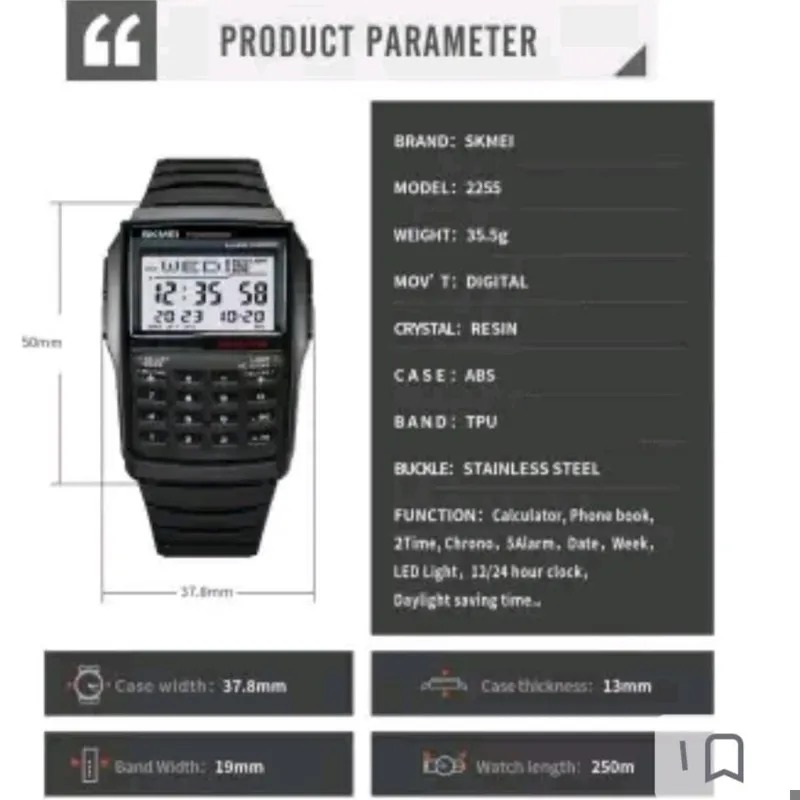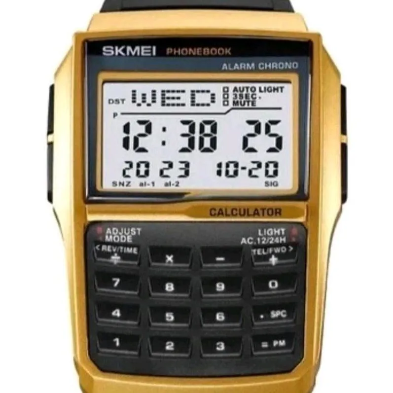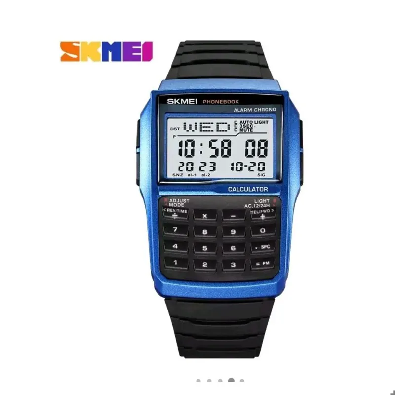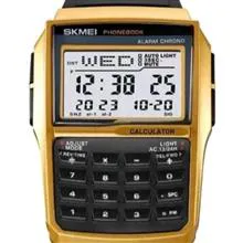 ساعت اوریجنال اسکمی ماشین حساب دار در دو رنگ دور طلایی و دور آبی و بدنه مشکی و دارای امکاناتی مثل چراغ دید در شب کرنوگراف زنگ بیداری ماشی حساب نمایش ایام هفته و تاریخ سال میلادب ساعت مستقل دو تا همراه با دفترچه راهنما مشروح امکانات را خواهم گذاشت.SKMEI 2255