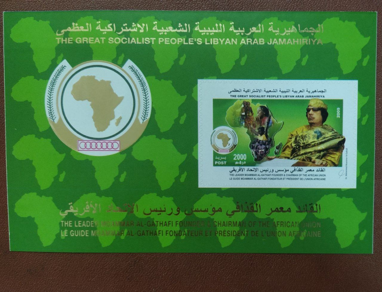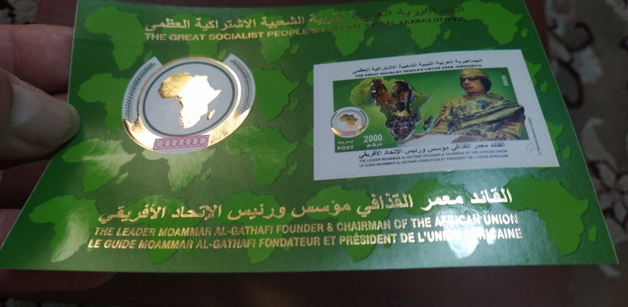 شیت تمبرنسبتا برجسته قذافی بی باطل یمن