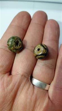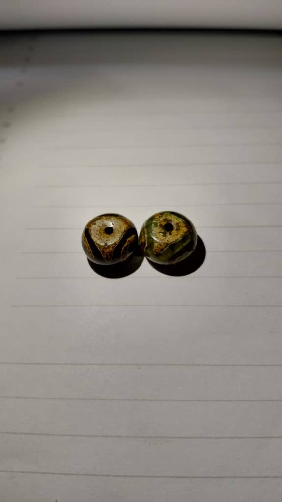 تعداد 2 عدد مهره چشم مار ی تبتی .یکی سیاه و دیگری سبز فروش به صورت یکجا