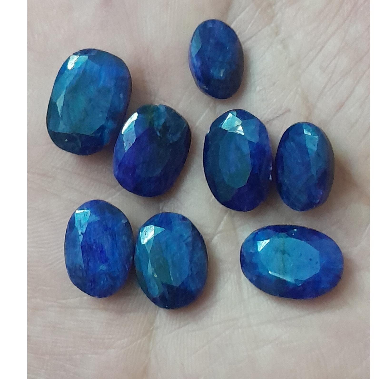 8قطعه یاقوت کبود طبیعی پررنگ ابی کاربنی غیر شفاف وزن کل41.5قیراط