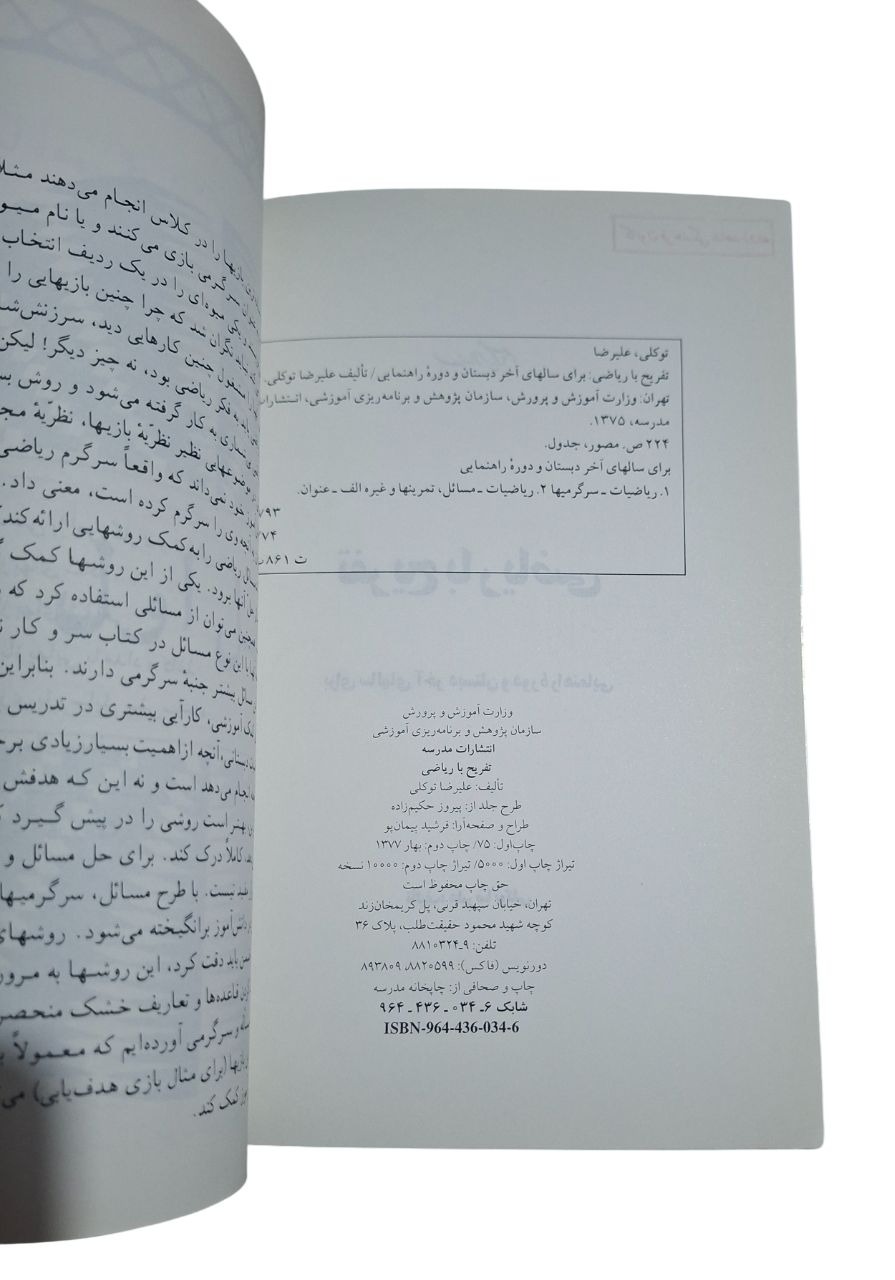 - عنوان: تفریح با ریاضی (برای سالهای آخر دبستان و دوره راهنمایی)