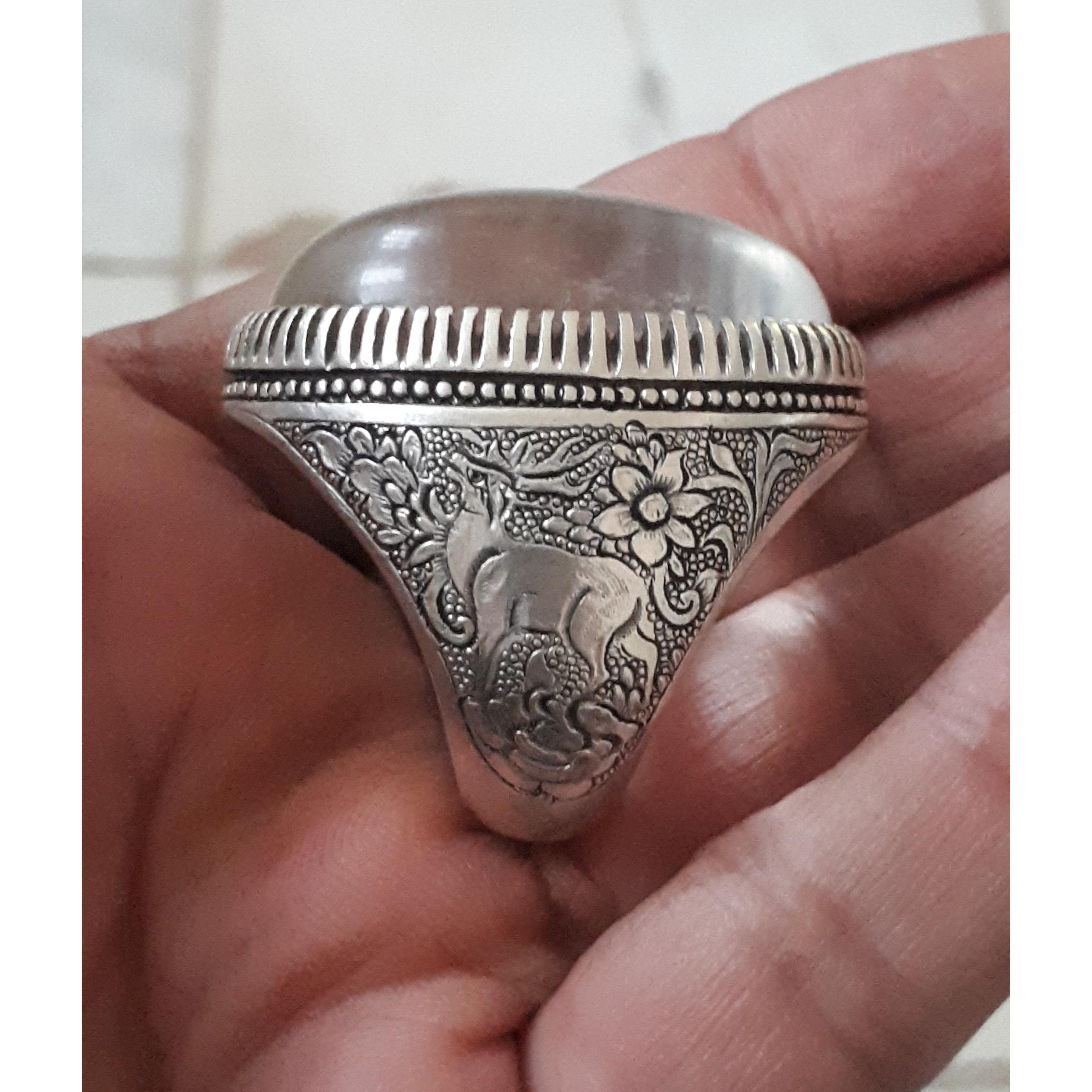 انگشتردستساز قلمکاری درنجف پاک 40 ساله رکاب قلمکاری دوطرف گوزن وزن 73 گرم مهرداخل رکاب خوانده نمیشه ذات داروکهنسال