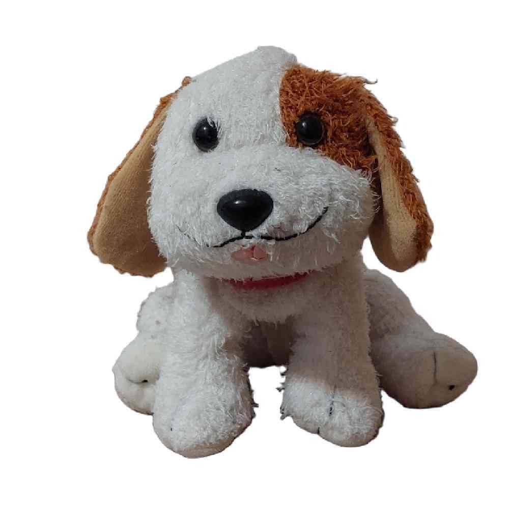 عروسک سگ سفید گوش قهوه ای خارجی وارداتی هاپو خزی
