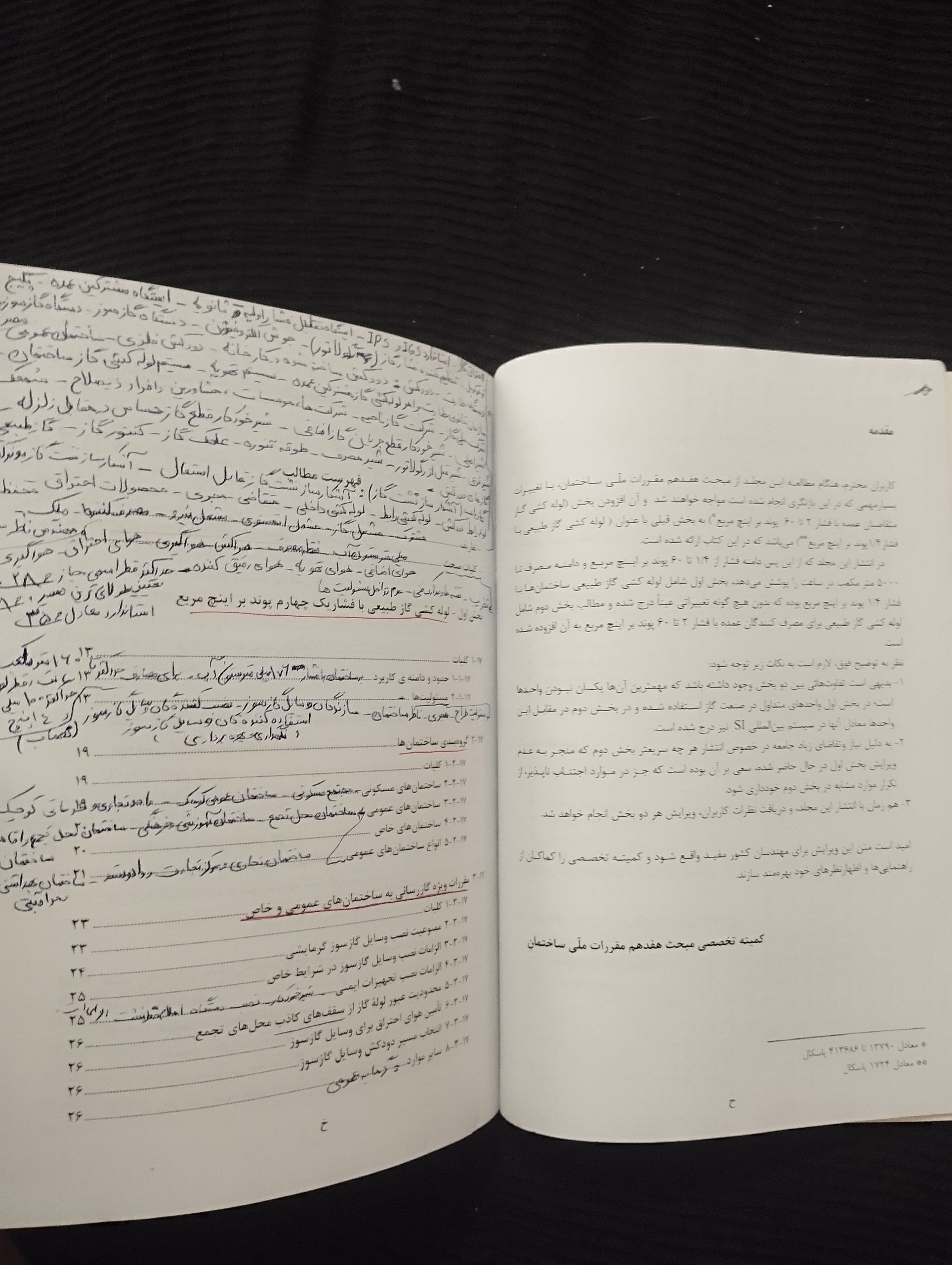 چند صفحه از کتاب با مداد و خودکار نوشته شده است