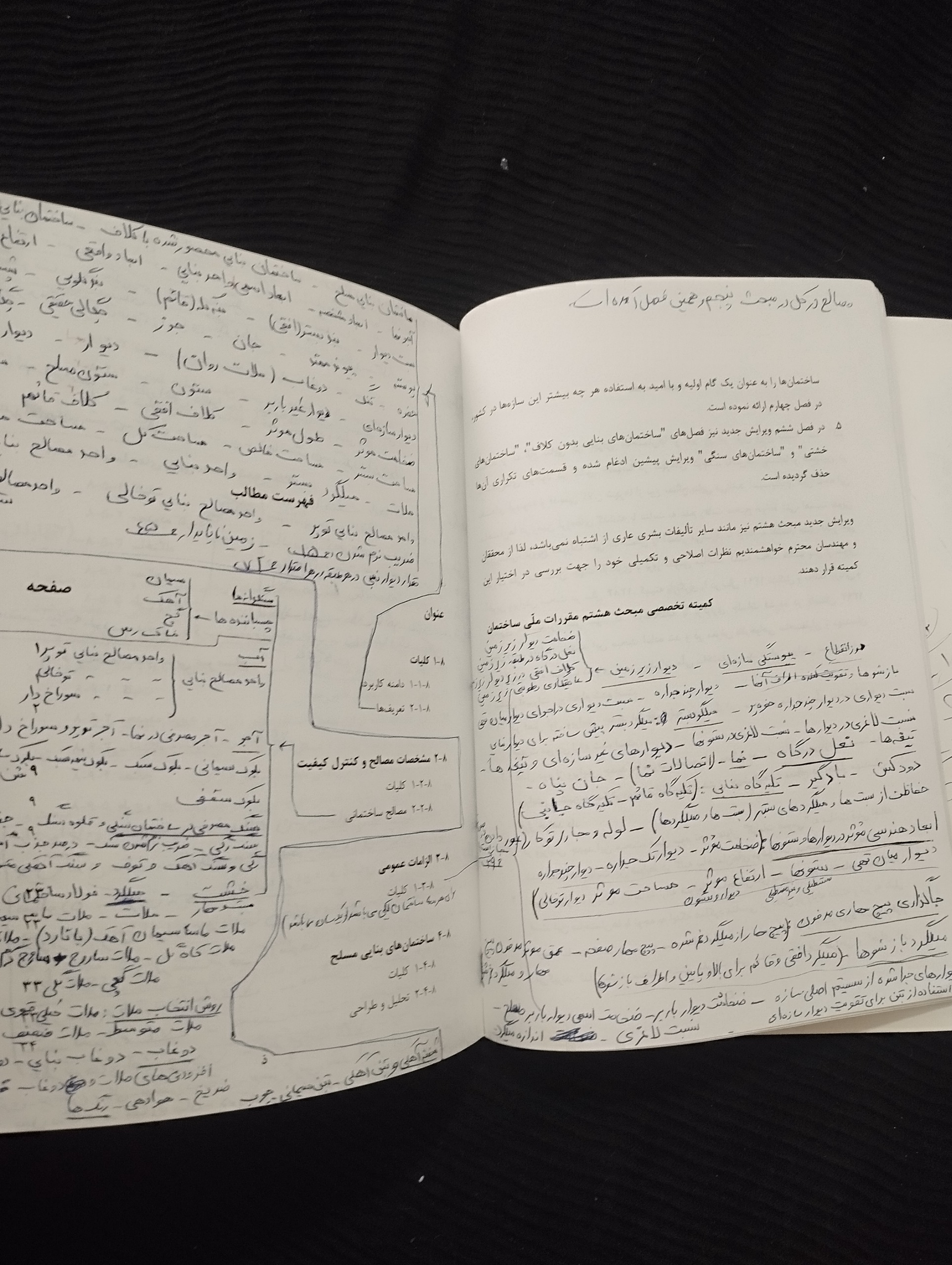 چند صفحه از کتاب با مداد و خودکار نوشته شده است