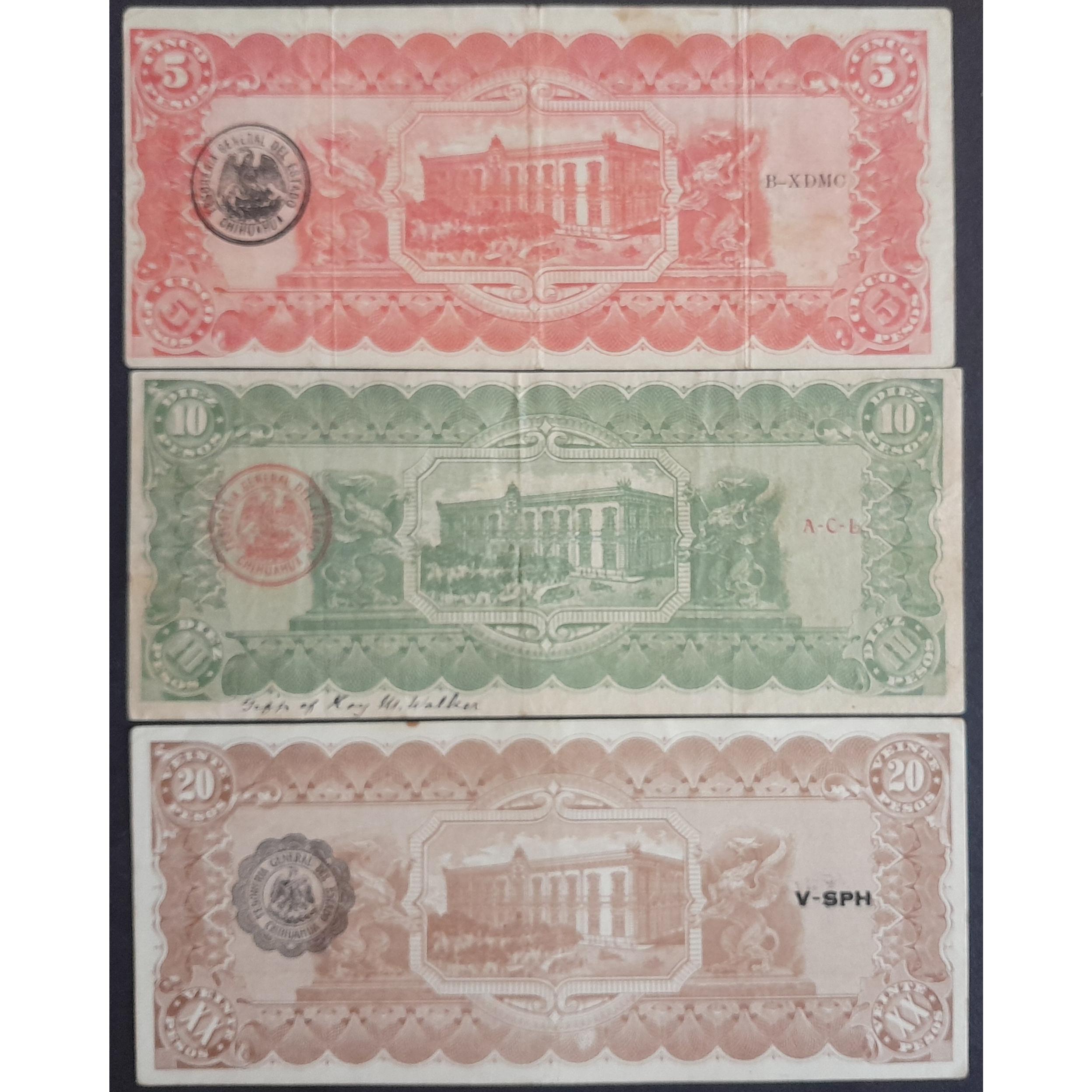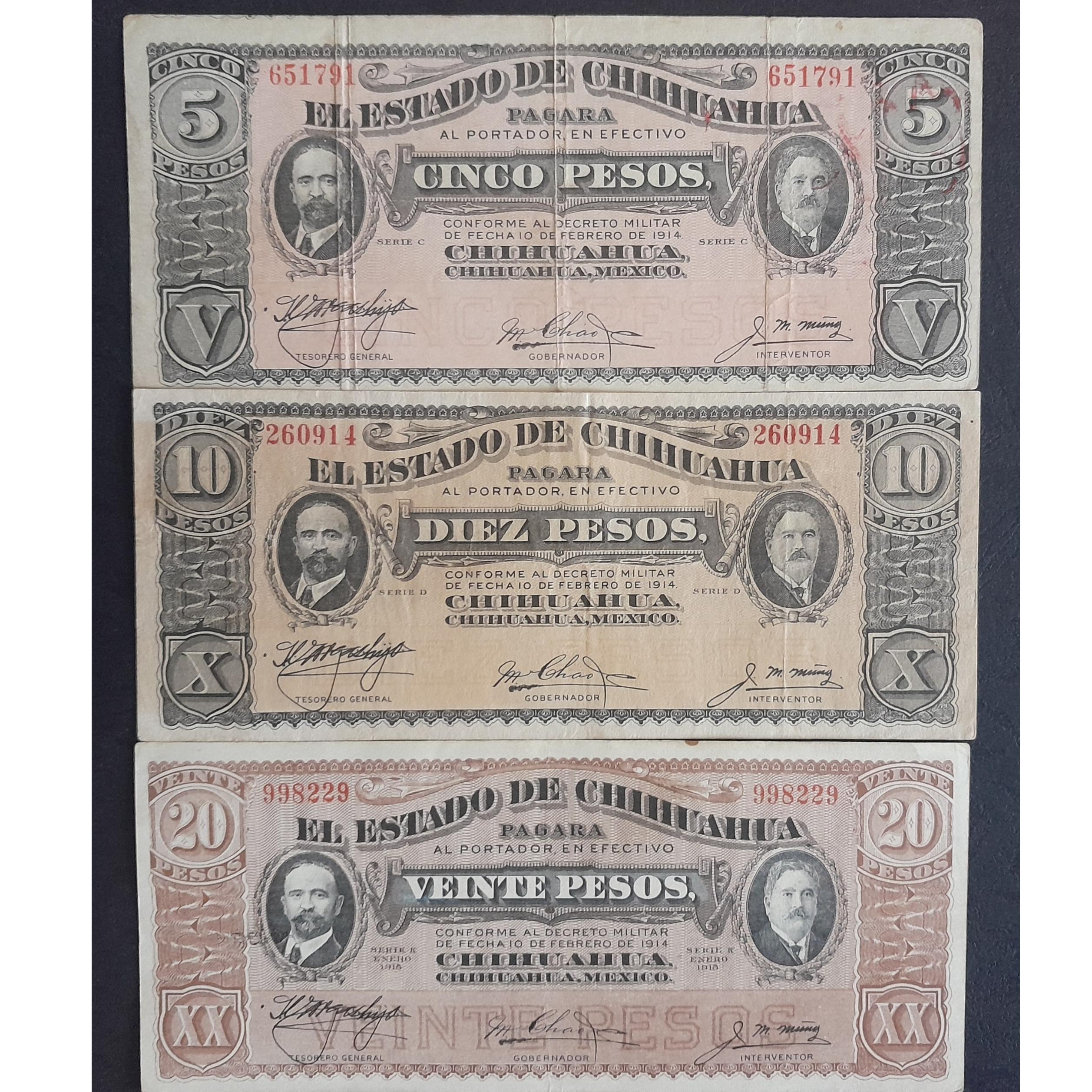 ست کمیاب 5 و 10 و 20پزو مکزیک به تاریخ 1914