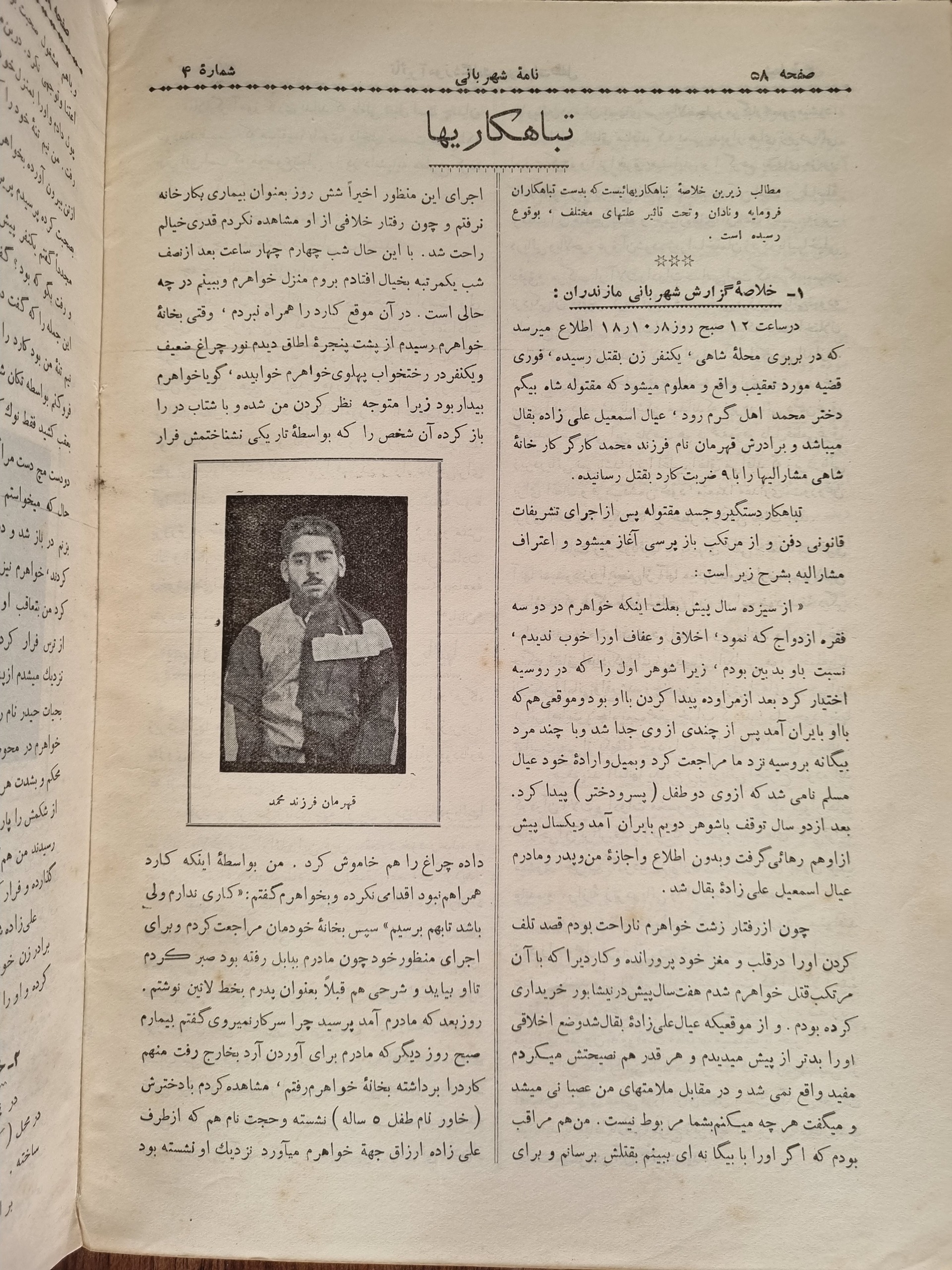 ماهانه نامه شهربانی، شماره چهارم