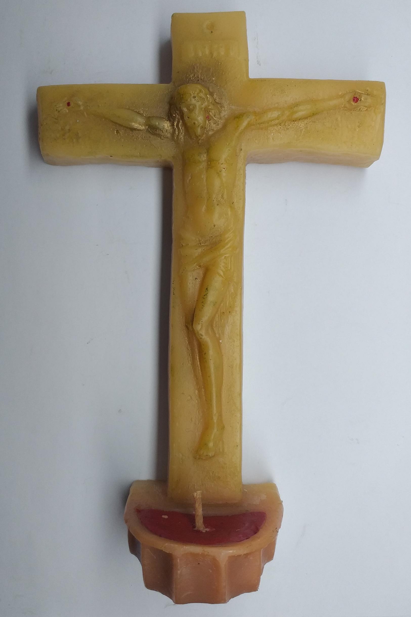 شمع دکوراتیو خاص و متفاوت به شکل حضرت مسیح به صلیب کشیده شده ، ساخته شده از پارافین فشرده سنگین .
